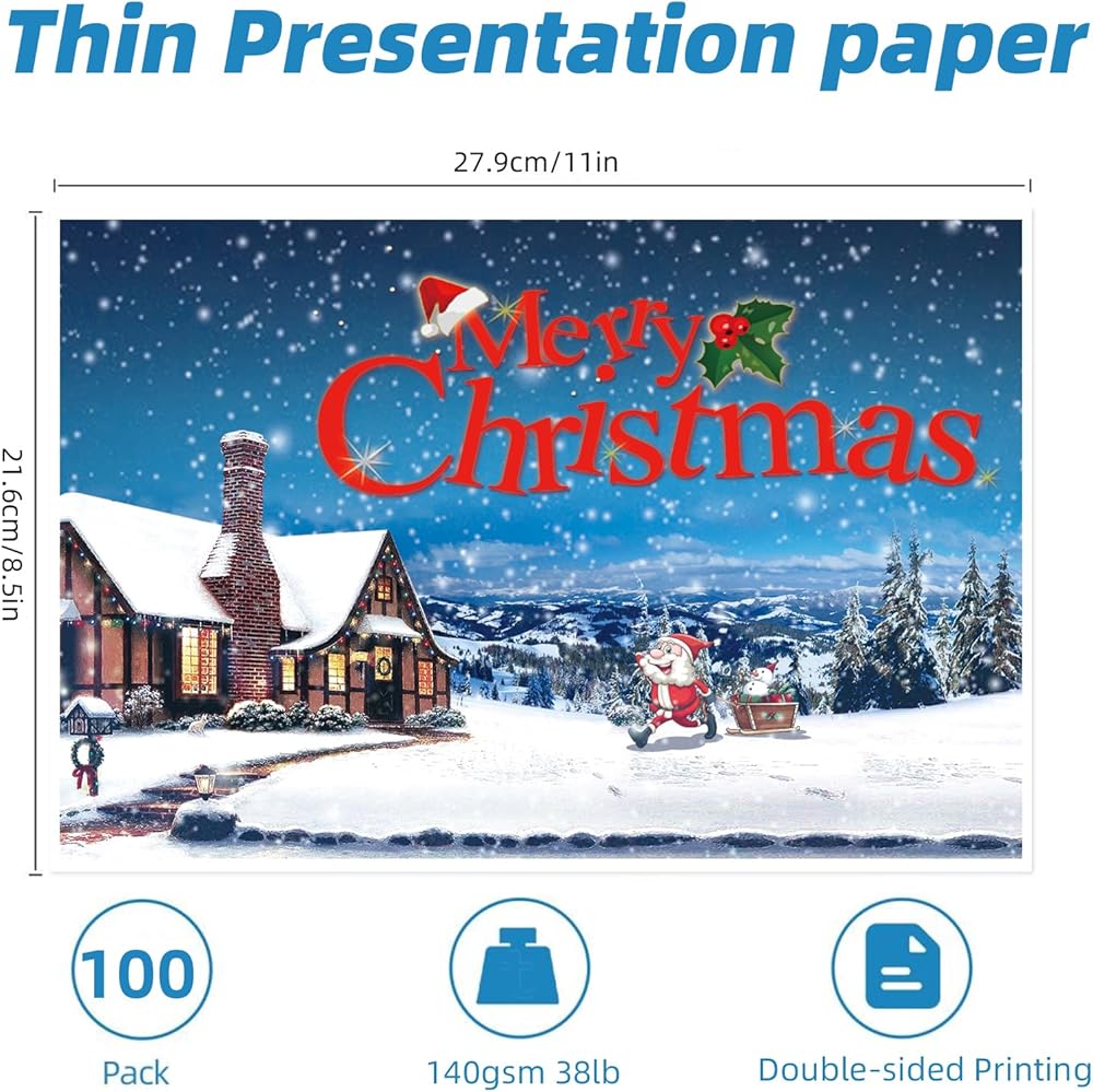 - سمك الورق: 6.5 مل، 130 جرامًا للمتر المربع، متوافق مع أي طابعة نافثة للحبر وطابعة ليزر