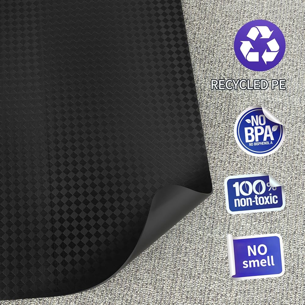 شديدة التحمل وغير قابلة للانزلاق: الجزء السفلي من سجادة الأرضية المصنوعة من الفينيل مصنوع من مادة شديدة التحمل غير قابلة للانزلاق، مما يمنعها بشكل فعال من التحرك أو الانزلاق أثناء الاستخدام، مما يوفر بيئة مكتبية أكثر أمانًا ويقلل من خطر الانزلاق العرضي.