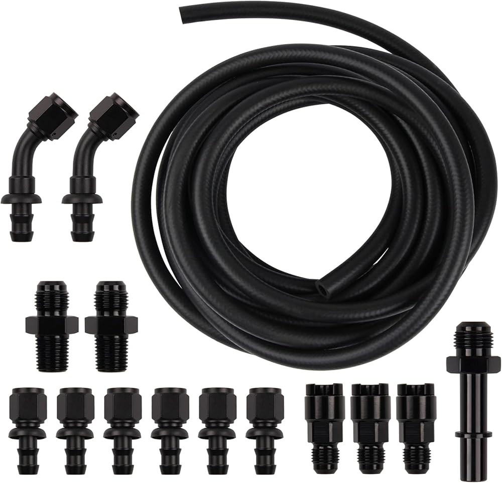 تشتمل مجموعة خط الوقود 6AN على: 1* 25 قدم 3/8 NBR خرطوم حقن الوقود المطاطي، 6* 6AN طرف خرطوم مستقيم، 2* 6AN 45 درجة طرف خرطوم، 2* 6AN إلى 1/4 بوصة تركيب محول خرطوم NPT، 2* 6AN تركيب محول خرطوم إلى 3/8 بوصة، تركيب محول خرطوم 1* 6AN إلى 5/16 بوصة، 1* AN6 إلى 3/8 بوصة فصل سريع للذكور.