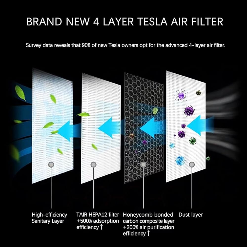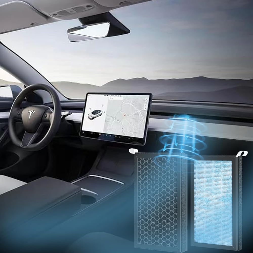ملحقات Tesla Model 3 /Y قطعتان من فلتر تكييف الهواء عبارة عن حماية من ثلاث طبقات: Meltblown Electrostatic + Filter HEPA + الكربون المنشط الحبيبي.