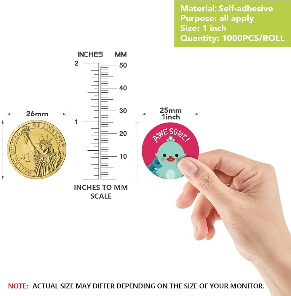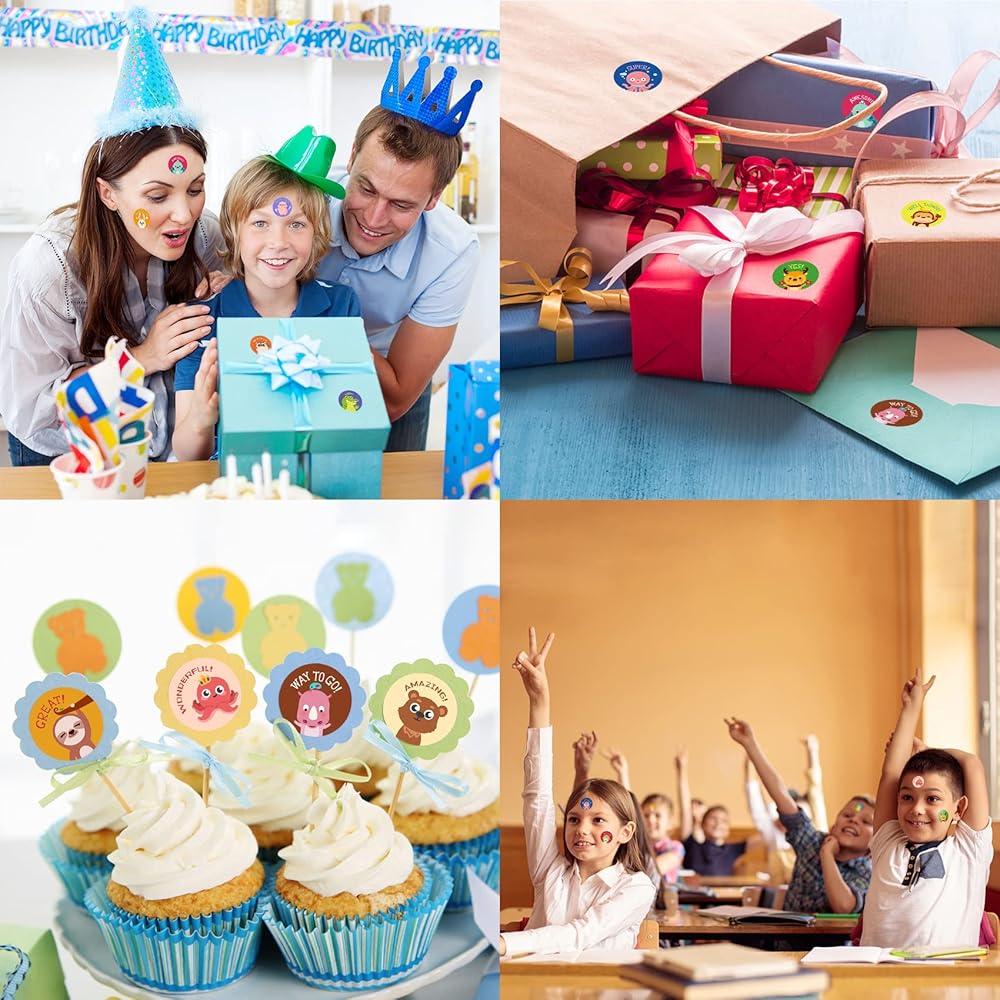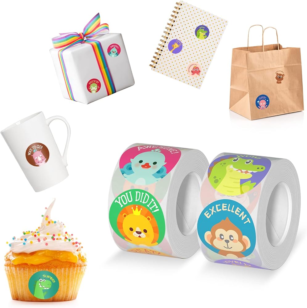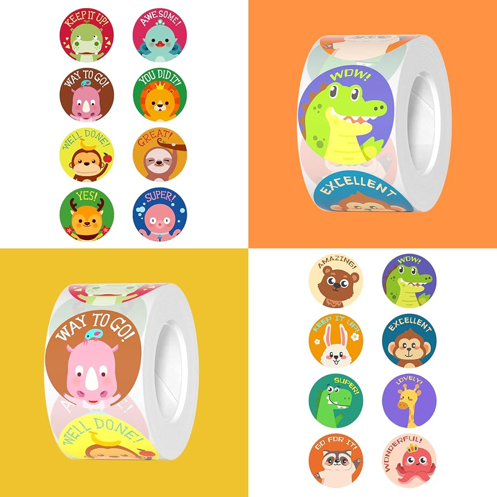 1000 قطعة من ملصقات حوافز الأطفال، ملصقات حوافز للمعلمين، ملصقات تدريب على استخدام المرحاض، ملصقات تحفيزية كرتونية للحيوانات، ملصقات حافزة، ملصقات تدريب أولية، 16 تصميمًا (1 بوصة/2 لفافة)