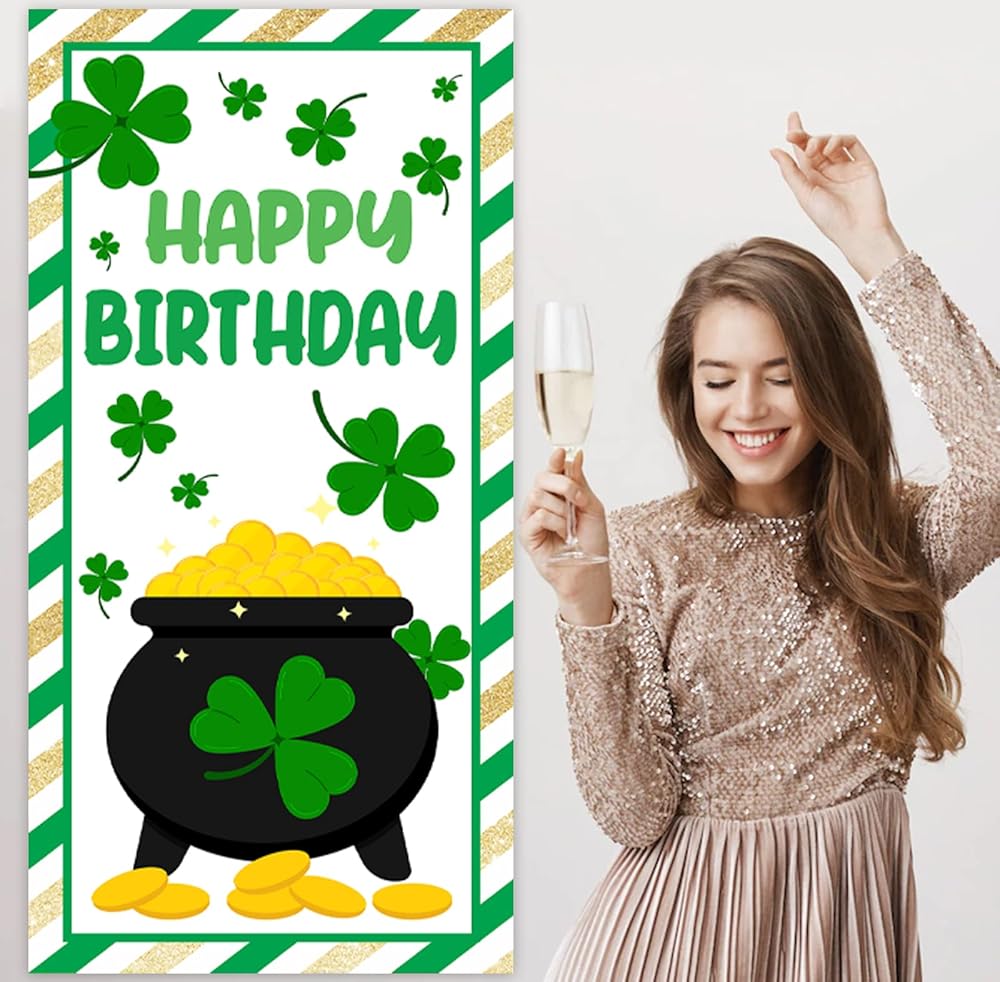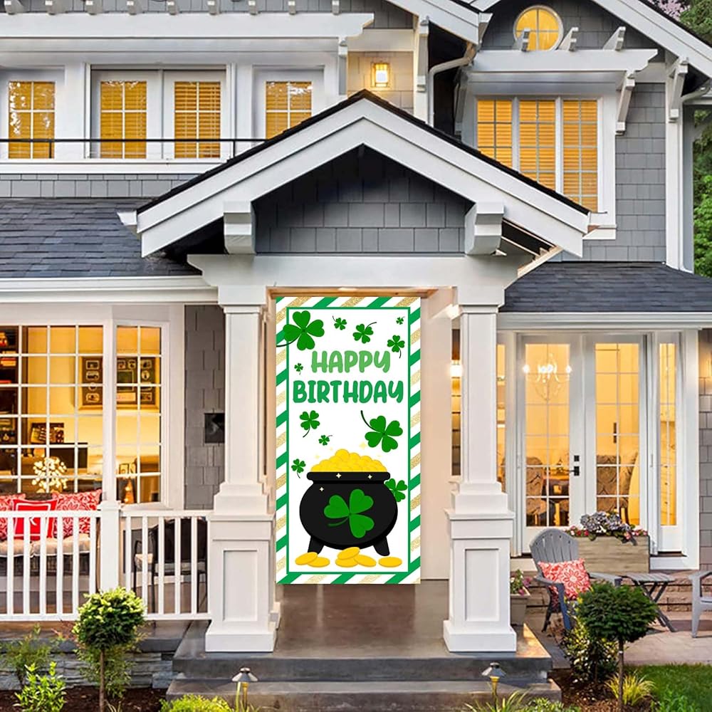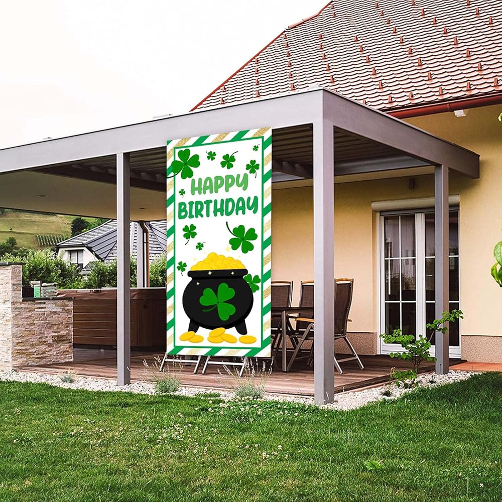 ديكورات يوم القديس باتريك، لافتة يوم القديس باتريك، خلفية عيد ميلاد سعيد، ديكور بموضوع شامروك لشرفة الباب، يوم القديس باتريك، زخرفة أيرلندية لمستلزمات حفلات الحديقة، هدايا خلفية الفناء