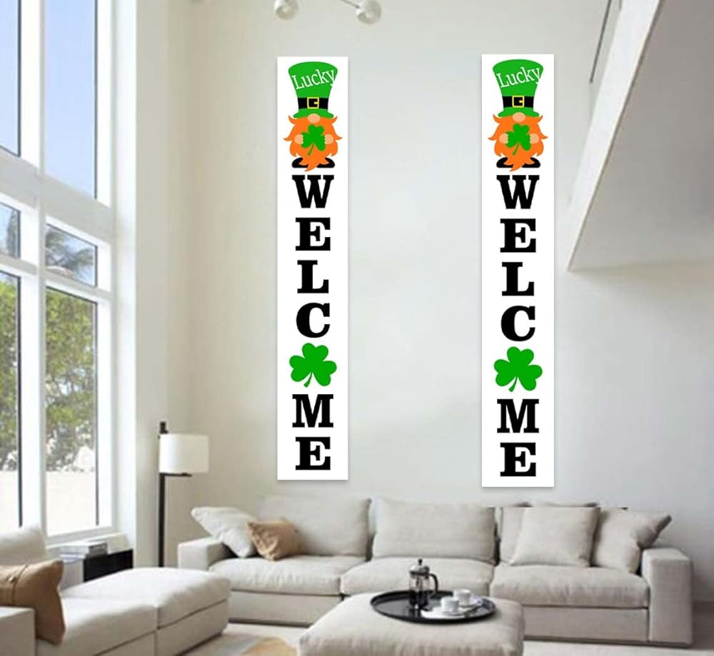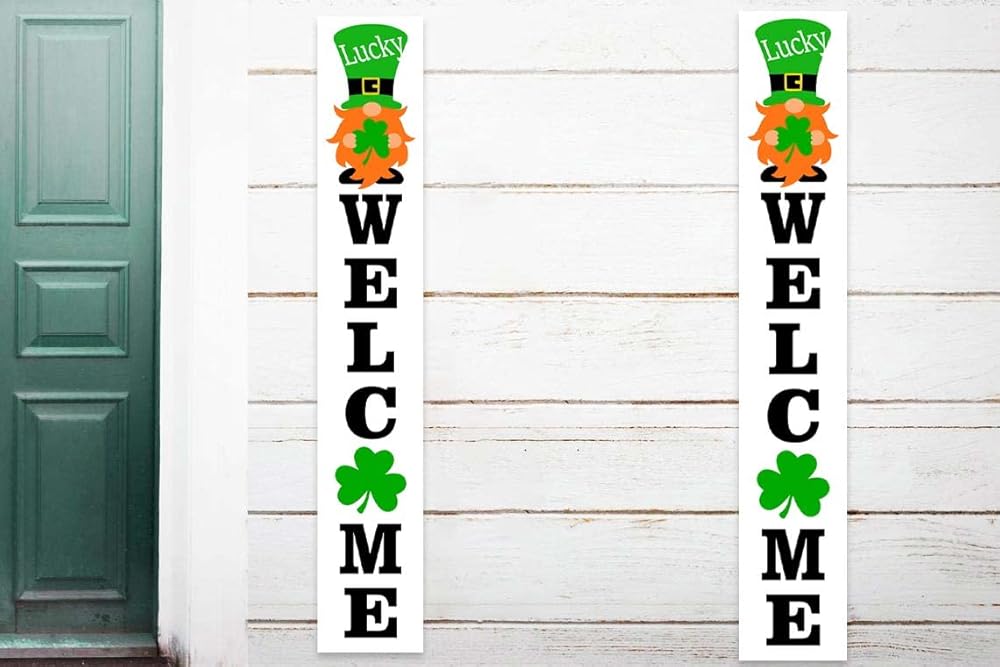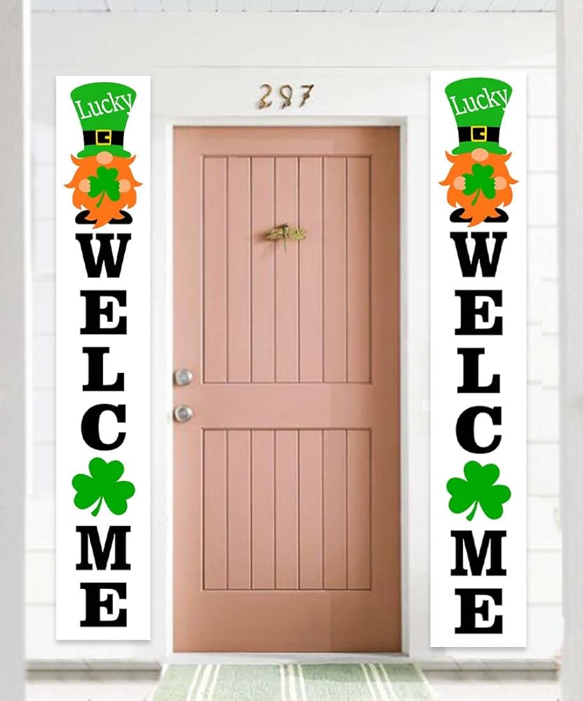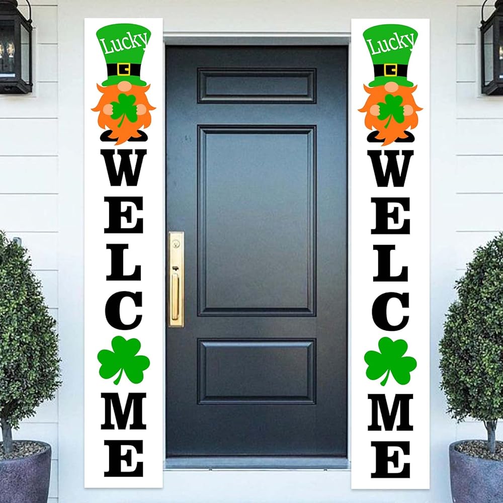 ديكورات يوم القديس باتريك، لافتة عيد القديس باتريك، خلفية ترحيب محظوظة، خلفية شامروك، ديكور لباب الشرفة، يوم القديس باتريك، زخرفة أيرلندية لمستلزمات حفلات الحديقة، دعامات كشك الصور في الفناء