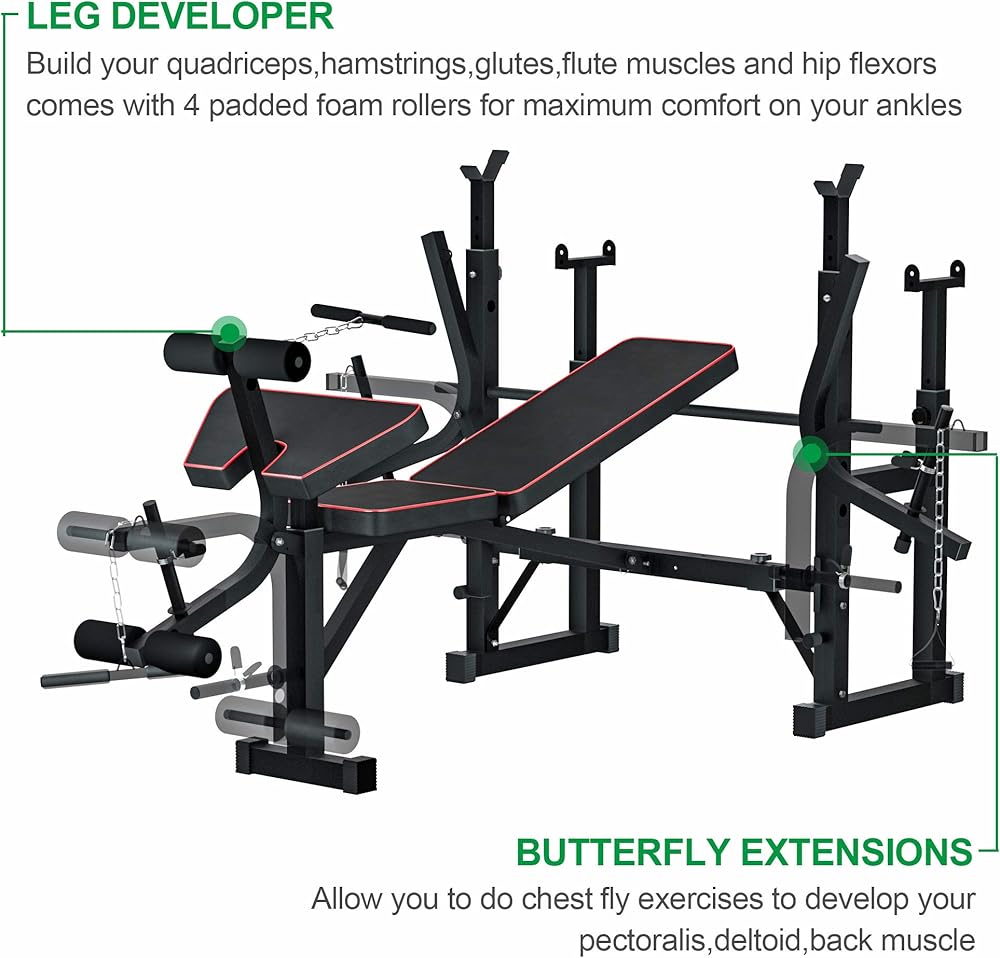 VIVITORY Adjustable Multi-Function Foldable Weight Bench, Olympic Workout Bench with Squat Rack, Fitness Barbell Rack, Commercial Weight Lifting Support w/Leg Developer Arm Training Equipment Home Gym Full-Body Strength Workout Exercise