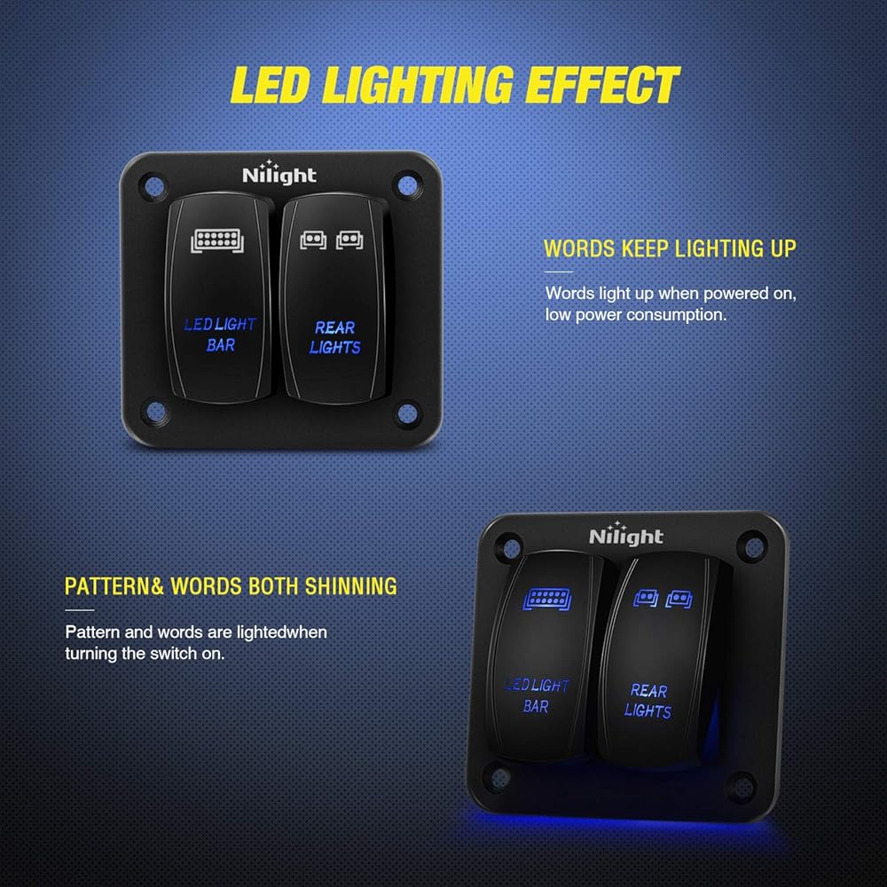 Package Includes:A pre-wired rocker switch panel,4 Screws,a wiring diagram.2 Year Warranty by Nilight.