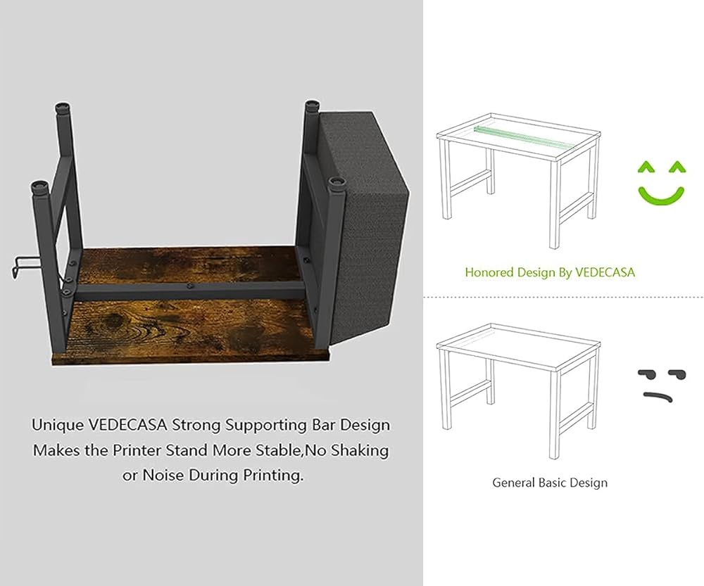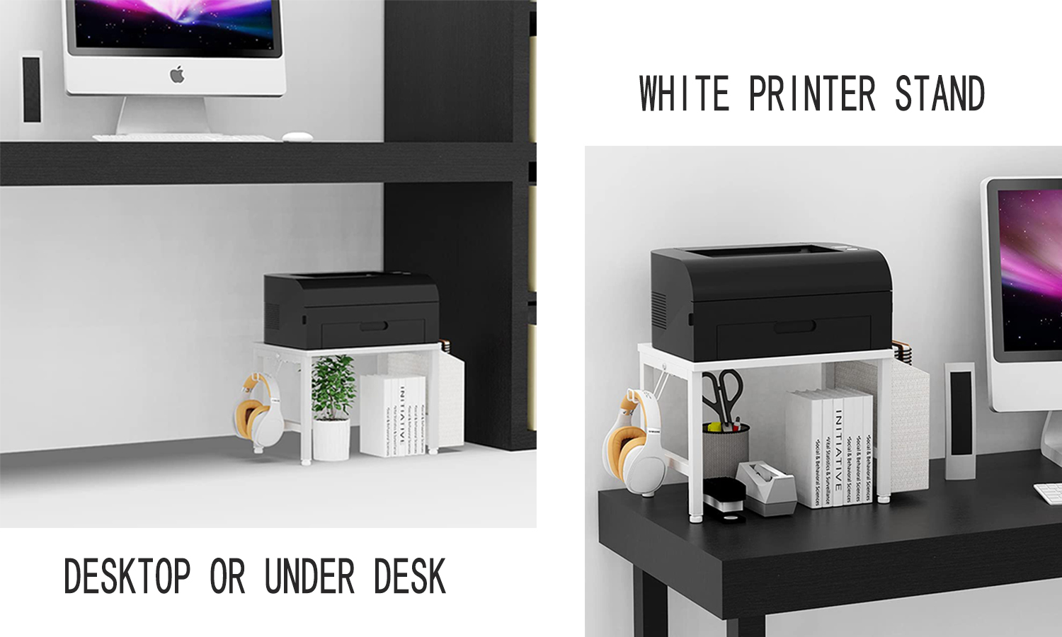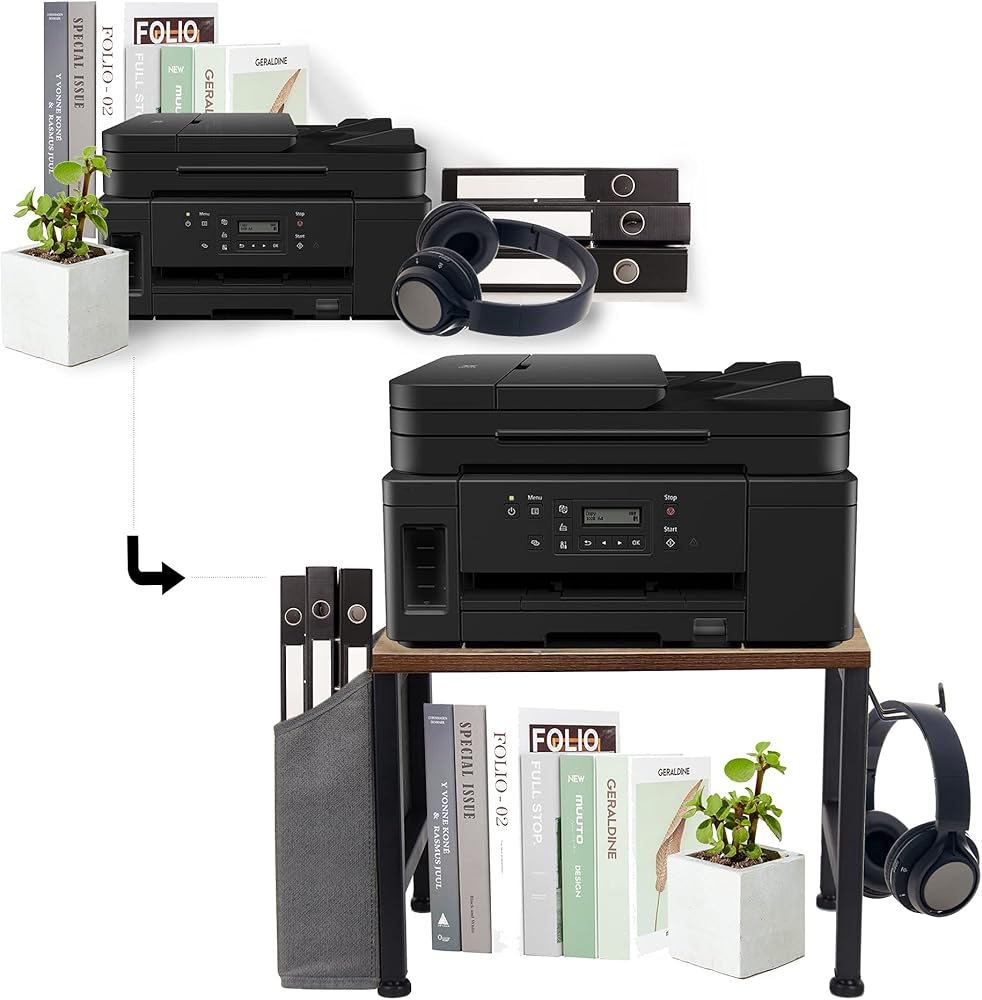 【توفير المساحة】يمكن استخدام حامل الطابعة كرف مكتبي أو كمنظم تحت المكتب، كما يوفر حقيبة تخزين إضافية وخطاف حديد. ستساعد حقيبة التخزين في تنظيم مساحة العمل الخاصة بك في المنزل أو المكتب بشكل أكثر كفاءة، كما يسمح لك الخطاف الحديدي بتعليق سماعات الرأس أو الأدوات المفيدة الأخرى.
