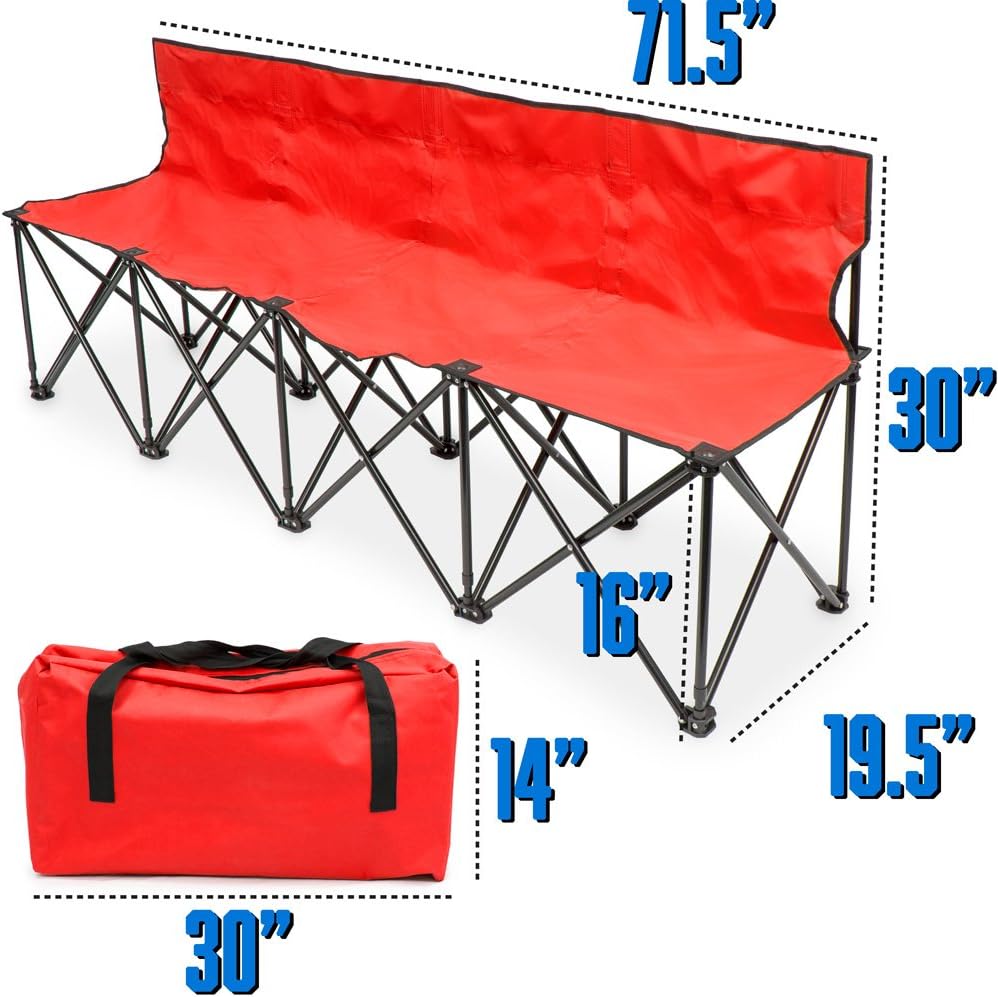 مقعد من Crown Sporting Goods بطول 6 أقدام قابل للطي و4 مقاعد مع ظهر المقعد وحقيبة حمل - مقعد فريق رائع لكرة القدم وكرة القدم الجانبية والتخييم والأحداث