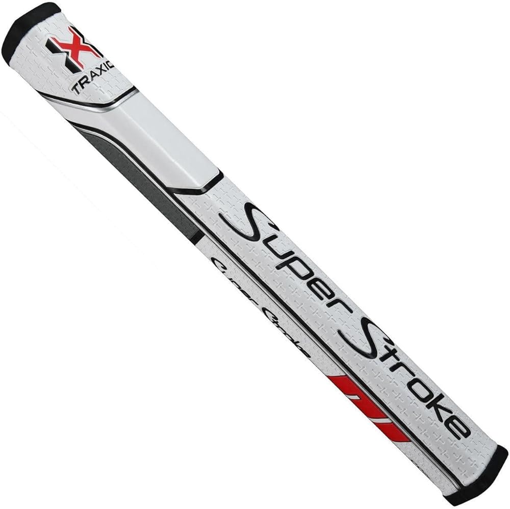 قبضة مضرب الجولف المربعة Superstroke Traxion SS2R™، أبيض/أحمر/رمادي (SS2R™) | نسيج سطحي متقدم يعمل على تحسين ردود الفعل والتصحيح | قلل من ضغط القبضة بفضل التصميم المتوازي الفريد