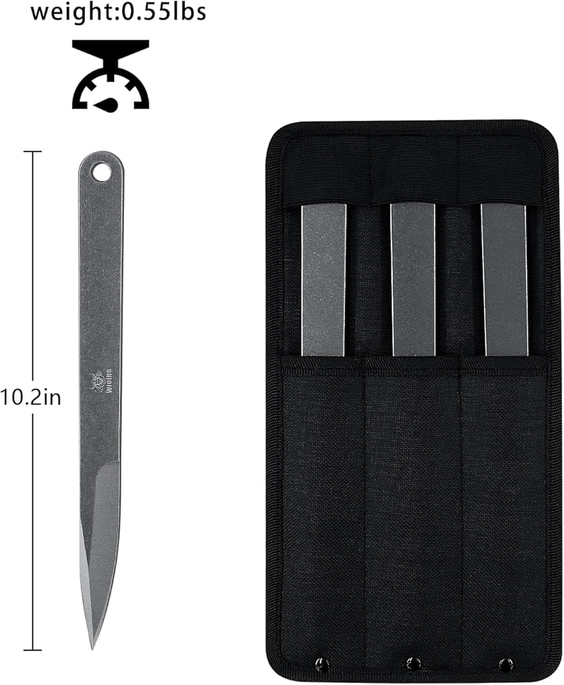 • Durable & Reliable: The throwing kit is made of stainless steel, has a Full Tang construction design, and its 0.236" thickness, its ensures durability and can withstand the impact of throws, making it resistant to bending or breaking during use.