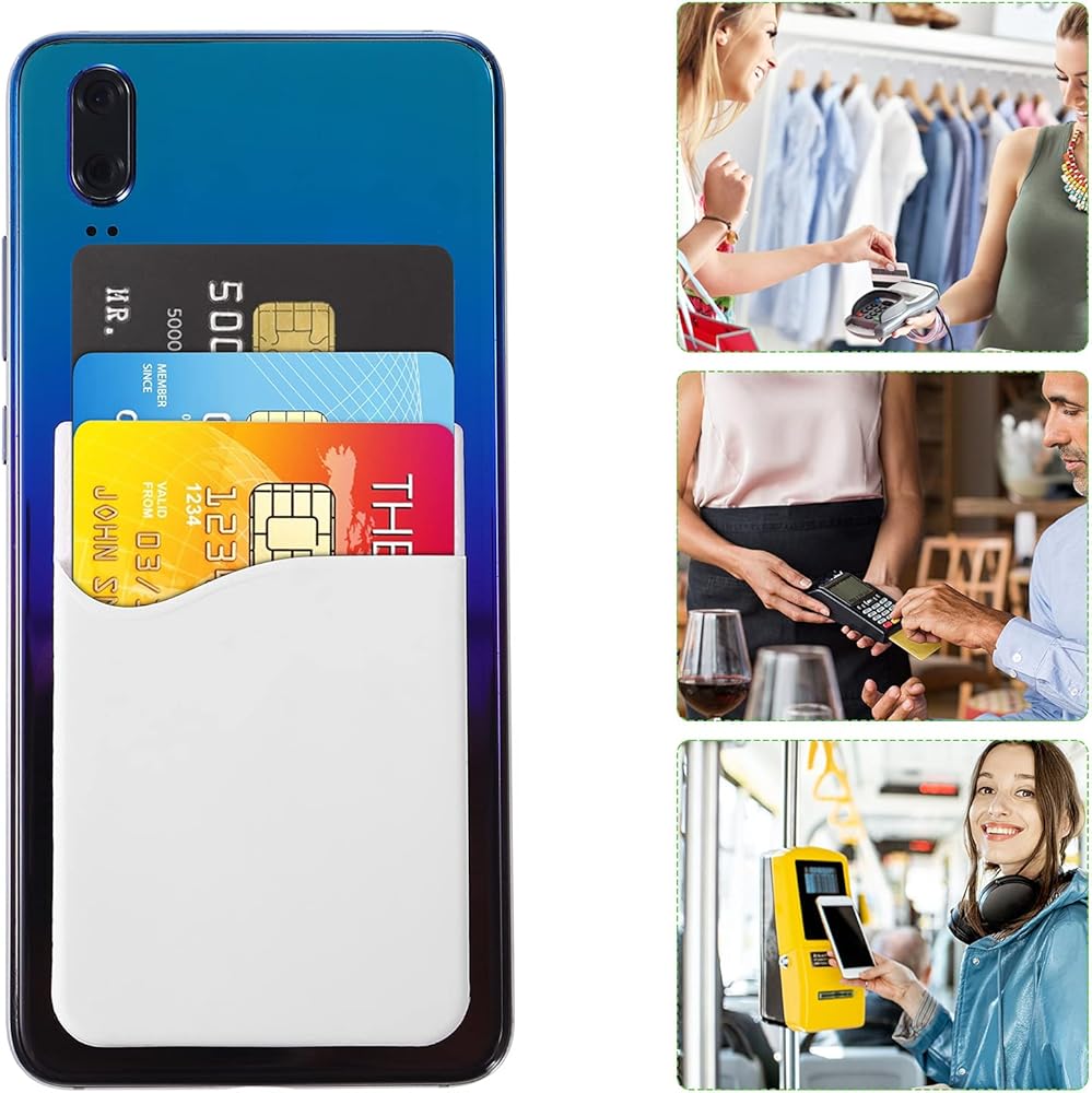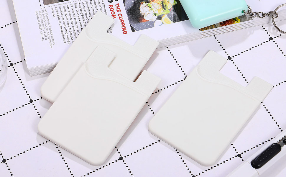 محفظة حامل بطاقات الهاتف الخلوي، 3 قطع، حافظة من السيليكون ذاتية اللصق رفيعة للغاية لبطاقة الائتمان وبطاقة الهوية وجيب لهاتف iPhone وSamsung Huawei والهواتف الذكية الأخرى (أبيض)