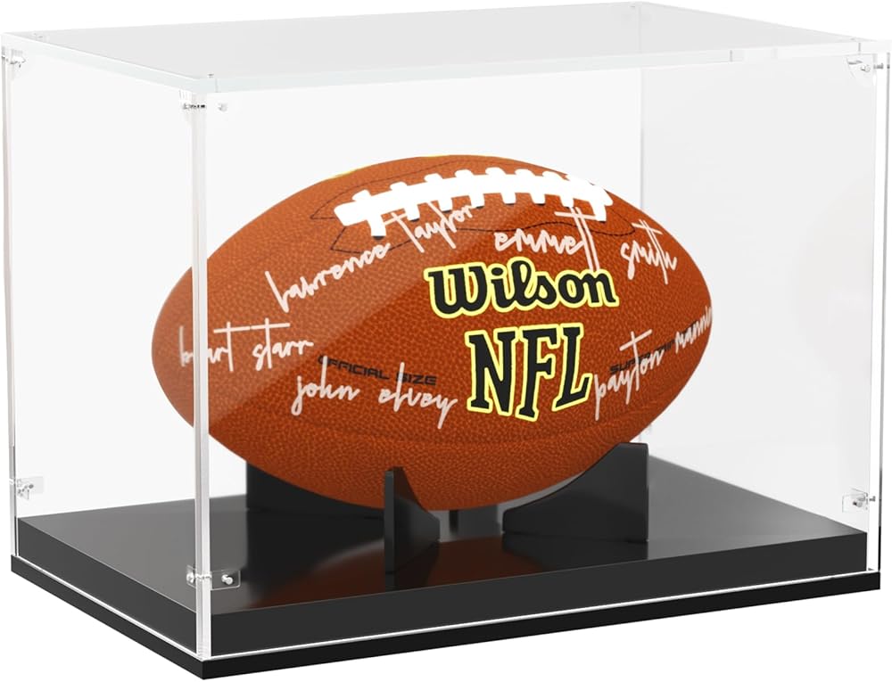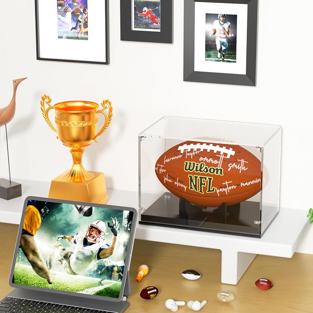 🏈خامة عالية الجودة - حافظة عرض كرة القدم هذه مصنوعة من مادة أكريليك شفافة عالية الجودة لتحقيق أقصى قدر من الرؤية وعرض واضح 360 درجة لكرة القدم الموقعة المفضلة لديك. ملحوظة: يرجى إزالة الغشاء الواقي الذي يغطي سطح ألواح الأكريليك الشفافة قبل التجميع لضمان وضوح علبة العرض.