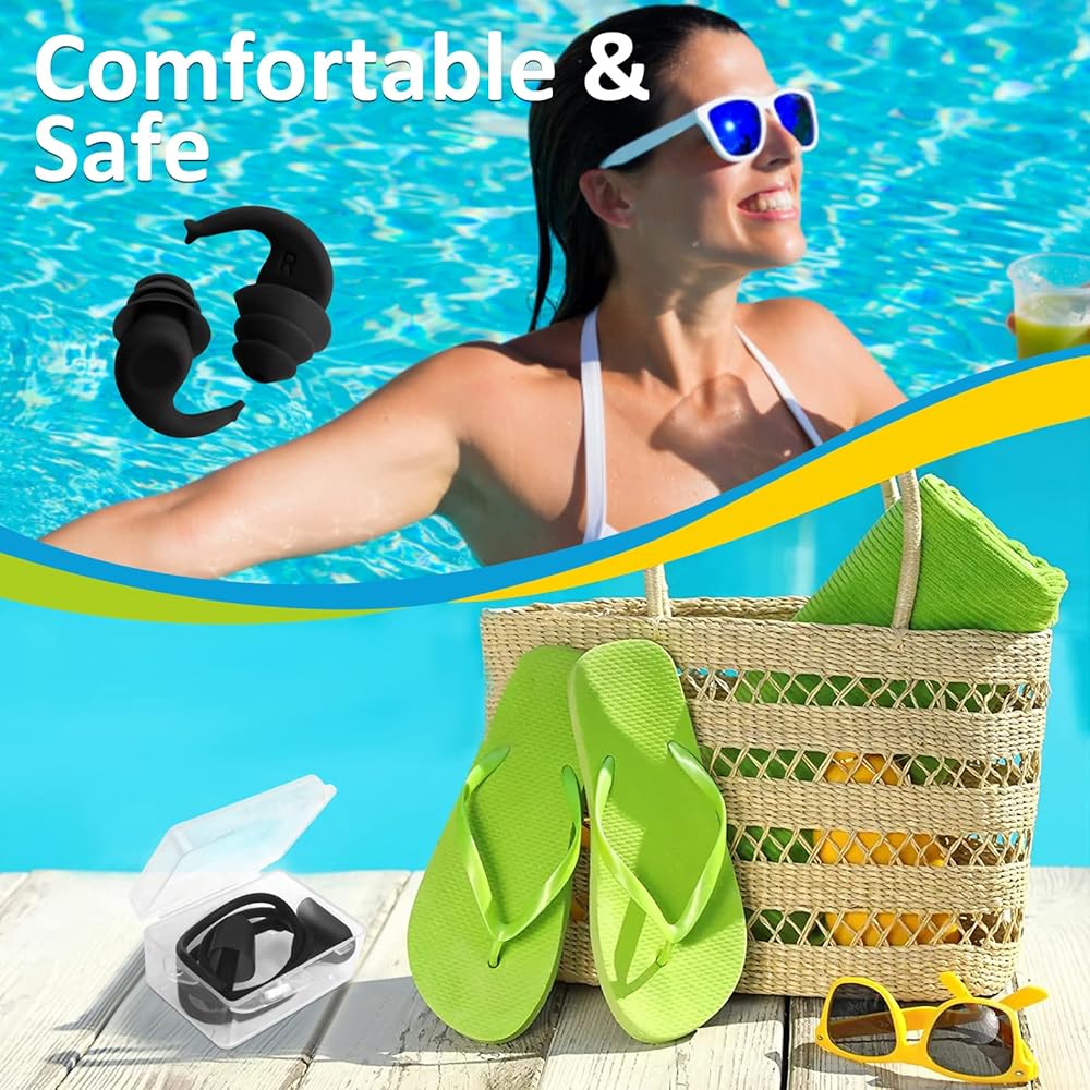 1. Swimming Earplugs - Soft and flexible slats designed for the human ear canal, fit the ear shape of both children and adults