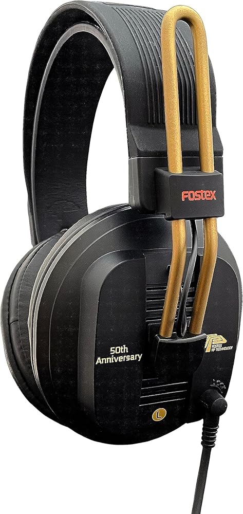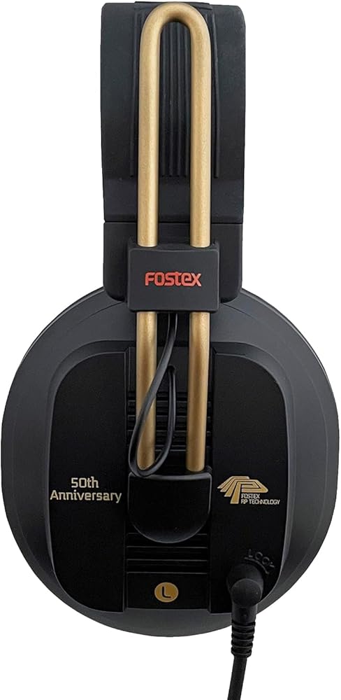 Fostex is celebrating its 50th anniversary by releasing a limited run of our popular T-RP series headphones, the T50RP 50th Anniversary Limited Edition. Using the same high-grade drivers as the T60RP, the newly developed yoke panels offer more efficient magnetic transmission for better linearity. A dedicated damper is installed inside the housing to reduce unwanted resonance. The right-side housing has "50th anniversary" in Japanese letters and the sliders are painted gold. Synthetic leather around-the-ear type ear pads offer great fitting and fatigue-free long-time use. The T50 RP Limited Edition uses the same head band cover and as T60RP (incl. Logo sticker)as T60RP. Detachable connector offers balanced configuration (2.5mm, 4poles).