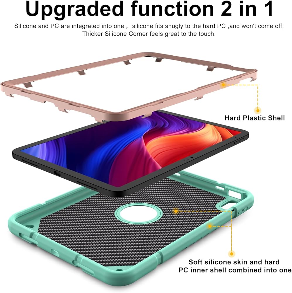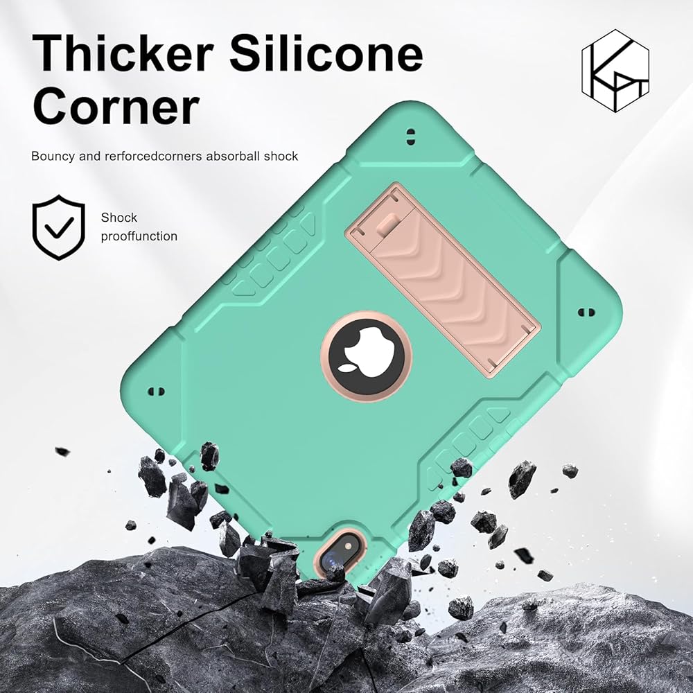 👽【حماية كاملة】توفر الحافظة الواقية للكمبيوتر اللوحي اثنين في واحد من KepaiTok الحماية الكاملة لجهاز iPad الخاص بك. الجراب الواقي أعلى من الزر والكاميرا، مما يمكنه حماية المعدات لتجنب الخدش اليومي. يمكن أن يؤدي تصميم الوسادة الذي يتركه غلاف TPU إلى تشتيت ضغط جهازك اللوحي بسرعة عند سقوطه. تعمل وسادات تبديد الحرارة الموجودة في الظهر على تبديد حرارة الجهاز بشكل أفضل، وتعمل المعدات بكفاءة.