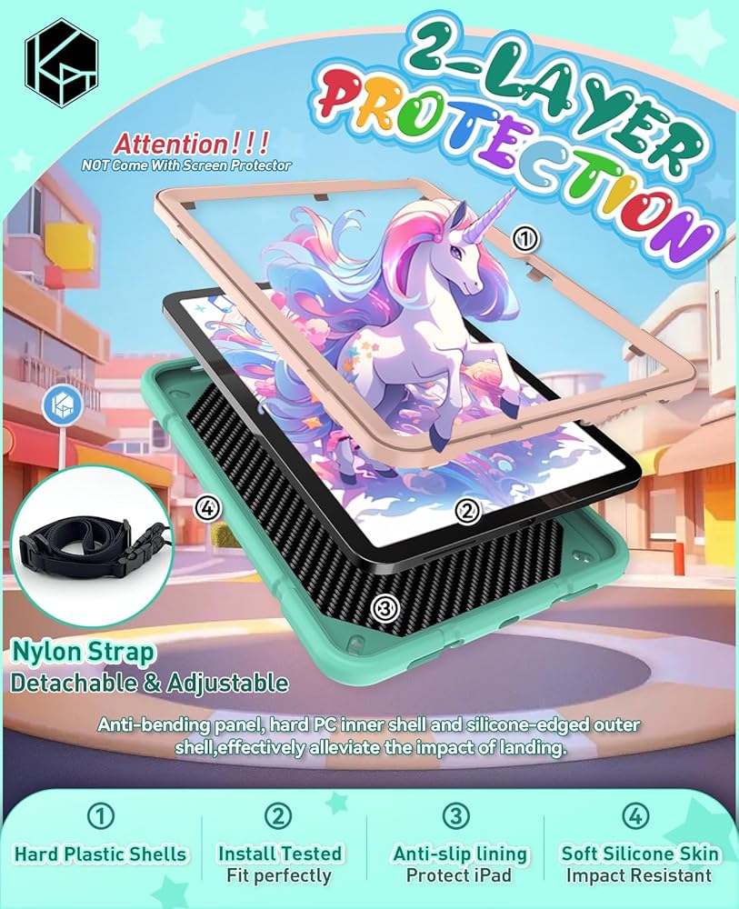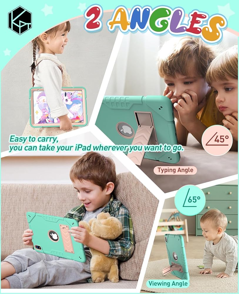 👽【الوظيفة】توفر حافظة الحماية KepaiTok iPad دعمًا بزاوية 45/60 درجة. سواء كان تعلم الأطفال أو الاستخدام اليومي للعمل، فإنه يمكن أن يوفر الزاوية الأكثر راحة. بالمقارنة مع الطراز القديم، فإن الحامل أكثر مقاومة وقوة، ويمكنه بسهولة التعامل مع السقوط اليومي. يمكن تطبيق تصميم حزام قابل للتعديل والتفكيك على المزيد من المشاهد. سواء كان ذلك في الهواء الطلق أو معلقًا في السيارة، يمكنك التعاون مع الأشرطة لتحقيق تجربة جيدة.