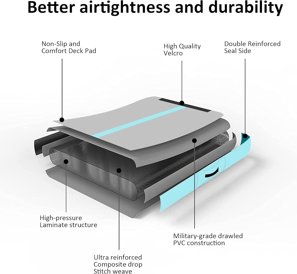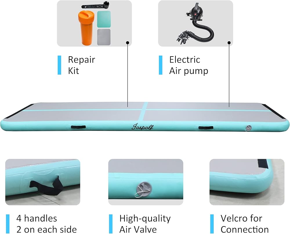 【Durable Material】 Jospolf Gymnastic Mat is made of Filament Grade Double-Wall Material (also know as drop stitch material) and high-quality PVC tarpaulin, better air-tightness and durability since reinforcement are made for all seams. It's extremely safe when you using it because this mat is leak-free and it is no smell because high-grade material.