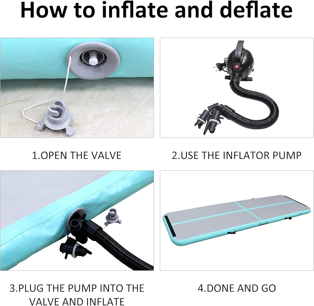 【 Fast Inflation】 Air Mat has different sizes (10ft/13ft/16/20ft) and the package includes a high power electronic electric air pump, you can inflate it in minutes and use it anytime; you can also deflate it quickly with the electronic electric air pump and put it in our complimentary carry bag and take it anywhere to your home, lawn, gym, park, beach, etc.