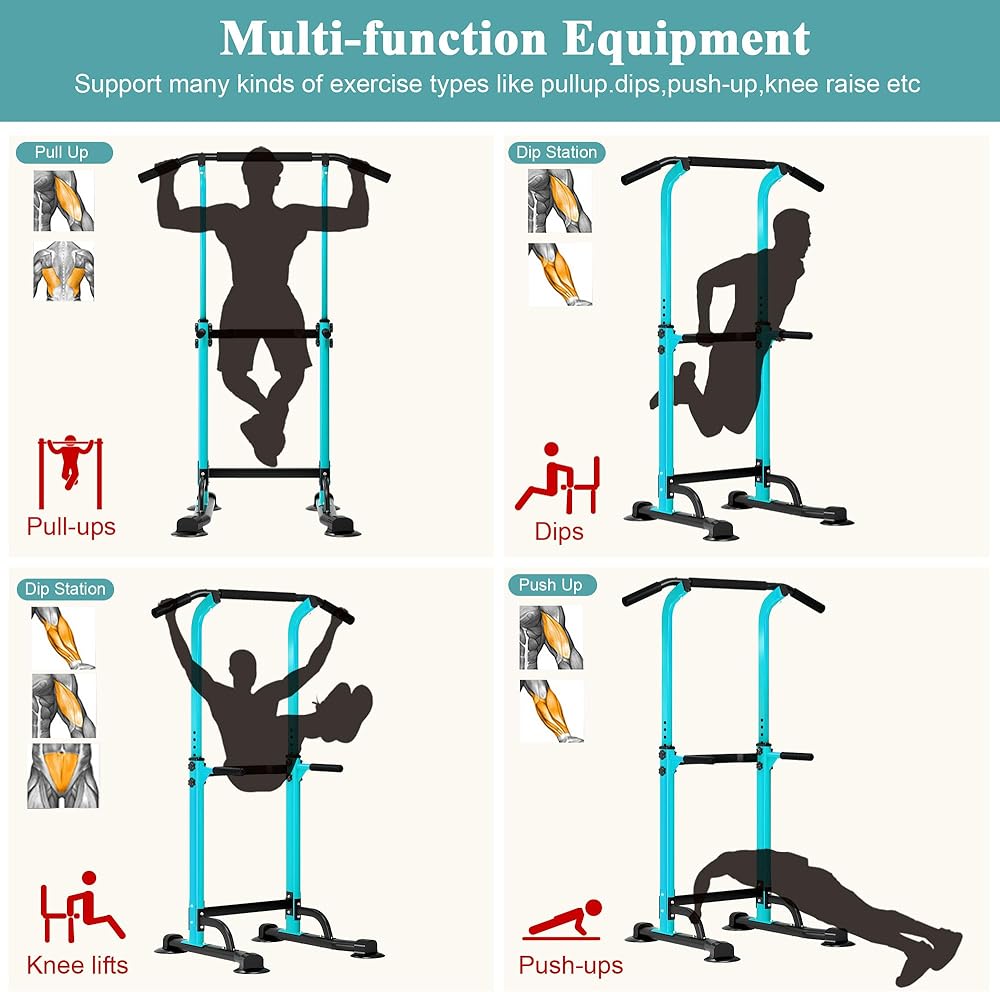 Tower Pull Up Bar Dip Station and Height Adjustable Dip Bar Stand, Multi-Function Home Gym Exercise Equipment Strength Training Fitness Workout Station