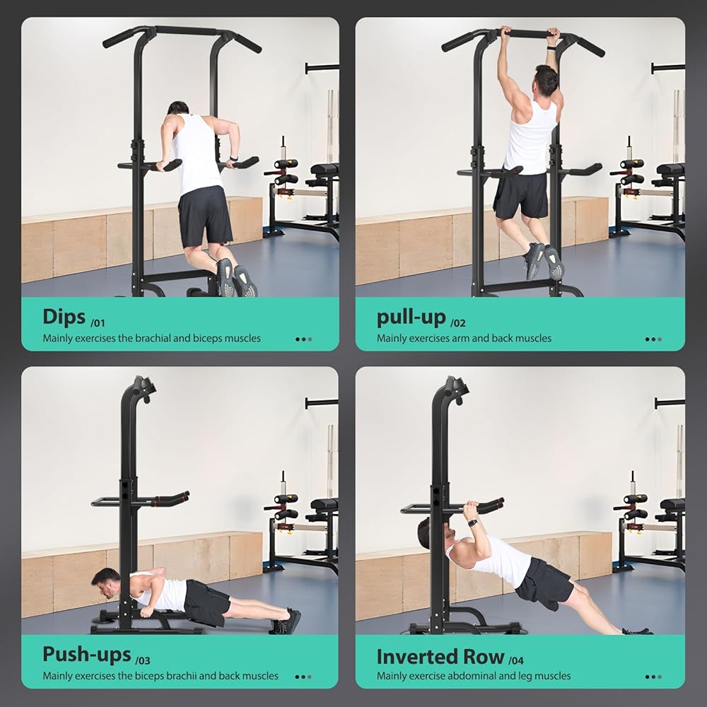 💪【متعدد الوظائف】يمكن لبرج الطاقة - أن يدعم مجموعة متنوعة من التمارين، مثل السحب والضغط ورفع الركبة والقبضة العكسية للذقن لأعلى كلما وحيثما كان ذلك ممكنًا.