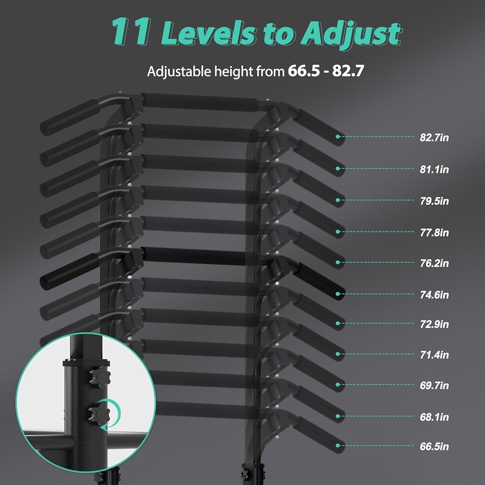 💪【11 مستوى لتعديل الارتفاع】يحتوي برج الطاقة على 11 ارتفاعًا قابلاً للتعديل يتراوح من 66.5 بوصة إلى 82.7 بوصة. تم تصميم المستوى الأدنى للأطفال وبرج الطاقة مناسب للتمرين لجميع أفراد الأسرة. إنها مريحة لمختلف الأعمار والأشكال والأحجام. مجموعة متنوعة من خيارات الارتفاع تجعلها مثالية للتمرين لجميع أفراد الأسرة.