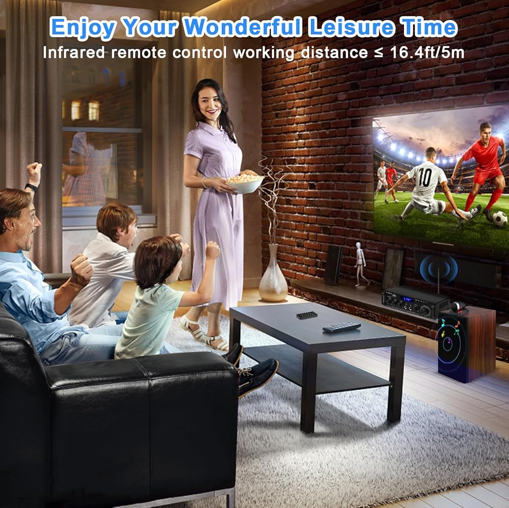 🎵 مضخم صوت استيريو HiFi🔊 جهاز استقبال مضخم رقمي ستريو 2.0 قناة بقوة 50 وات + 50 وات، بحد أقصى. الإخراج 600 واط P.M.P. O (ذروة خرج طاقة الموسيقى)، مع شريحة معالجة صوتية قوية، معدل التشوه: ≥0.3%، نسبة الإشارة إلى الضوضاء: 80 ديسيبل، قدرة قوية ضد التداخل، محاثة طاقة التدريع، مكبر صوت منخفض الضوضاء، مؤثرات صوتية عالية الدقة ، يمكنك تجربة تأثير غامرة.