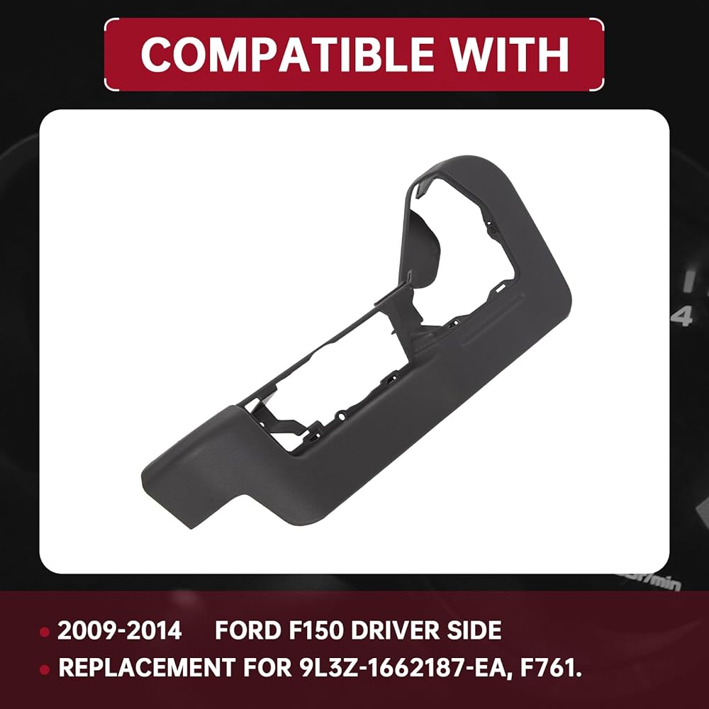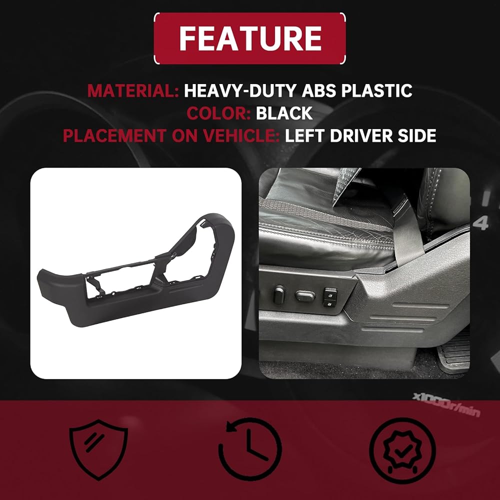 Fitment: Compatible with 2009-2014 Ford F150 Driver Side. Direct aftermarket replacement for 9L3Z-1662187-EA, F761.Please refer to part number to determine whether it is suitable for your vehicle before purchasing. NOTE: This Seat Trim Panel Cover Bezel is NOT suitable for manually adjusting seats and Super Cab power seats. Enhanced Protection - The Driver Side Left Power Seat Valence Panel Cover is a protective component designed to cover and shield the power supply and wiring located beneath the seat. This helps to prevent damage caused by exposure to external factors and ensures the proper functioning of the power supply. High-Quality Material - The cover is made from durable, heavy-duty ABS plastic, which ensures its strength and durability. The material is also resistant to rust, ensuring that the cover lasts for a long time. Package Included - 1 Left Seat Trim Panel Cover and some mounting accessories. Easy Installation - Installing the Driver Side Left Power Seat Valence Panel Cover is easy and requires no special tools or expertise. Instruction is not included.