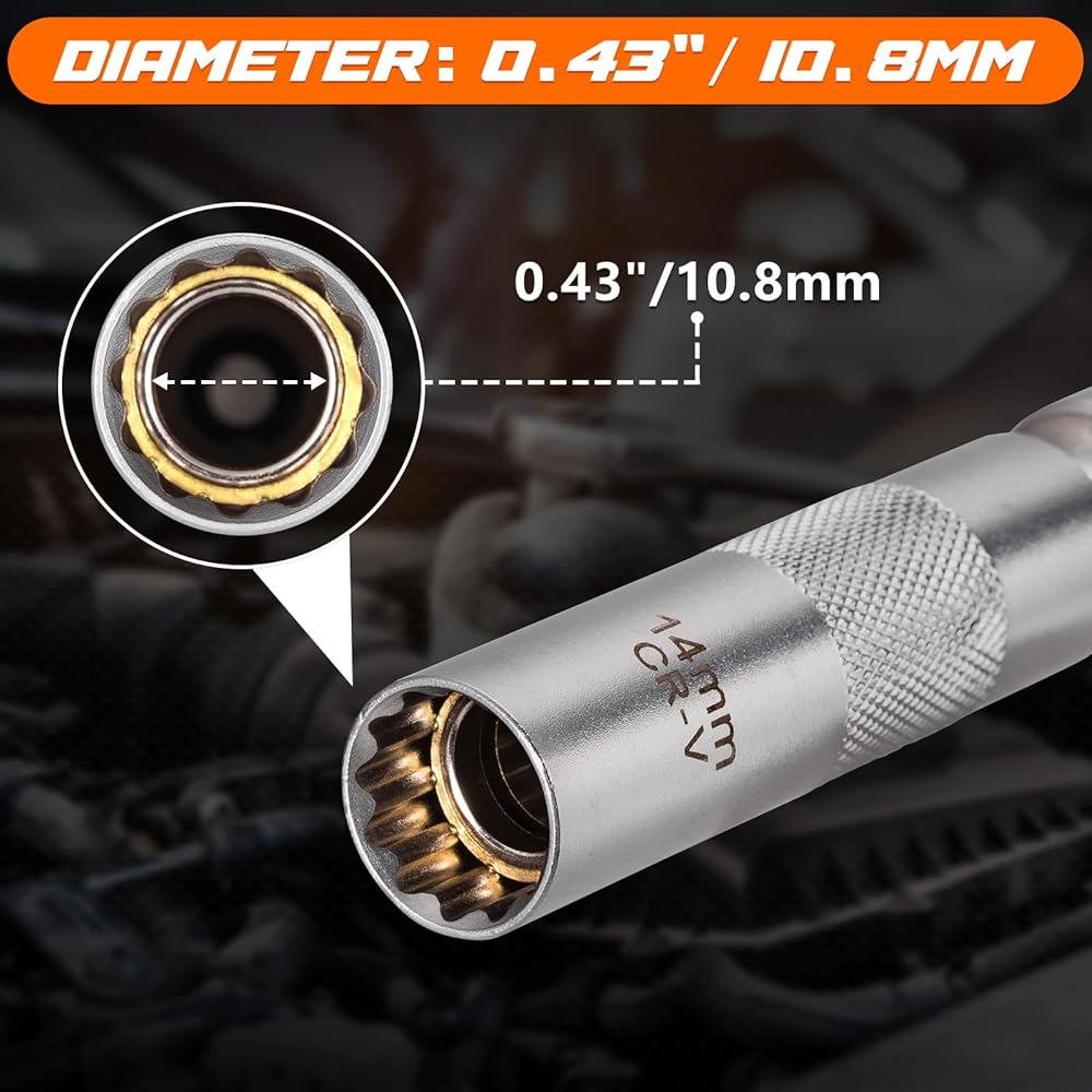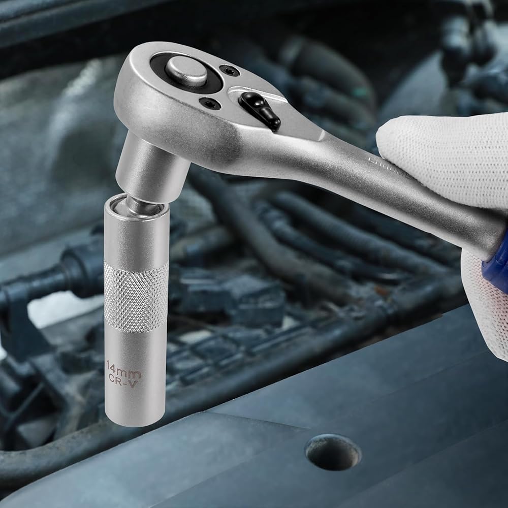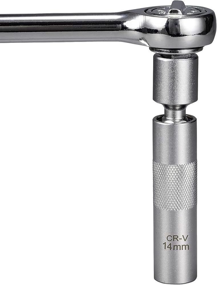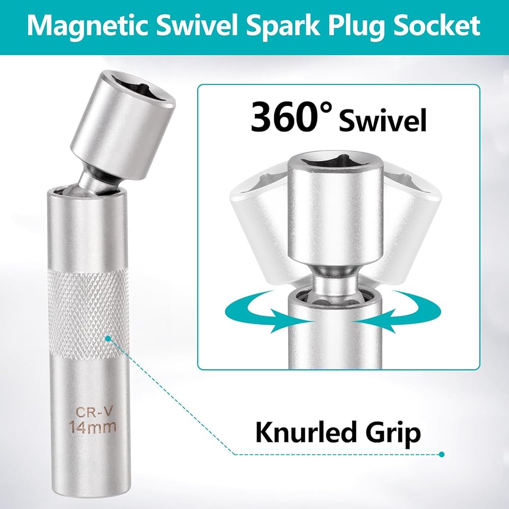 🔥 مصنوع من فولاذ الكروم الفاناديوم المتين عالي الجودة، مقبس قابس الإشعال مقاس 3/8 بوصة مقاس 14 مم متين ومقاوم للصدأ. تضمن الحركة الدوارة 360 درجة أقصى قدر من المرونة