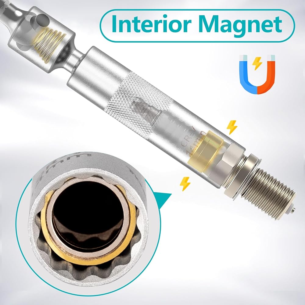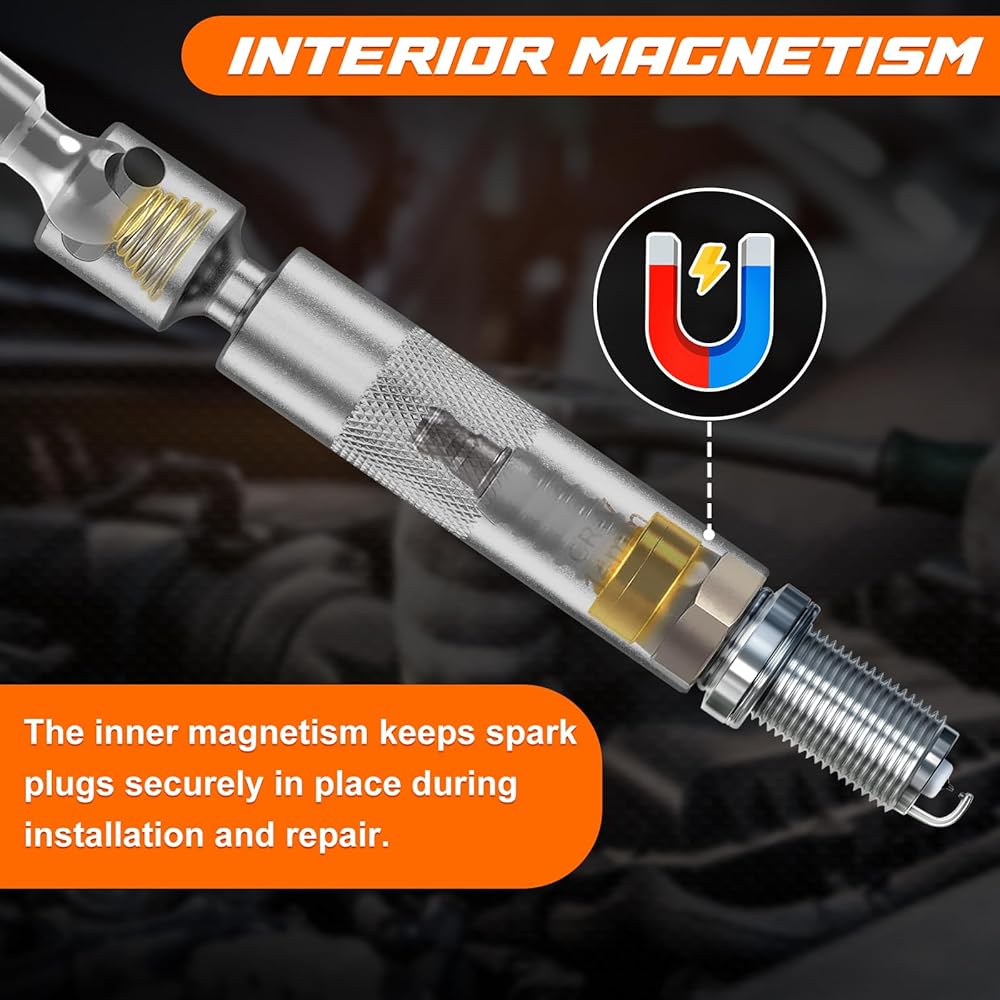 🔥 يحافظ المغناطيس الداخلي على مقبس شمعة الإشعال مقاس 14 مم ويحميه، مما يضمن بقاءه ثابتًا في مكانه أثناء التثبيت والإزالة. لا داعي للقلق بشأن سقوط المقابس في حجرة المحرك