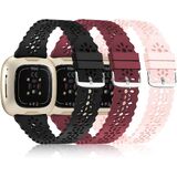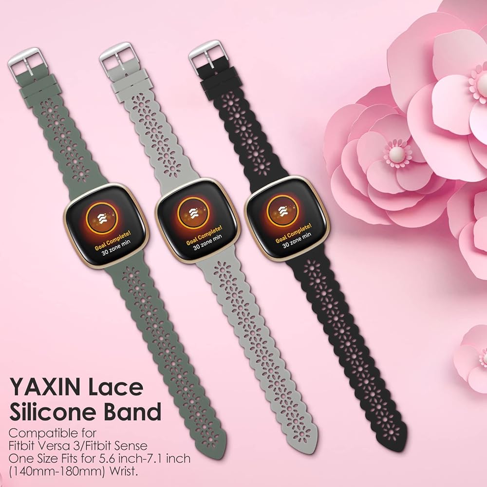【نماذج متوافقة】أساور معصم بديلة من السيليكون من الدانتيل الرقيق من YAXIN مصممة خصيصًا لـ Fitbit Versa 3/Versa 4 Bands/Fitbit Sense 2/Fitbit Sense. مقاس واحد: يناسب المعصم مقاس 5.6 بوصة - 7.1 بوصة (140 مم - 180 مم). (العبوة: 3 * أربطة سيليكون رياضية من الدانتيل قابلة للتنفس، 3 * دبابيس من الفولاذ المقاوم للصدأ) يرجى اختيار ملحقات الساعة الذكية Fitbit Versa المفضلة لديك قبل الطلب!