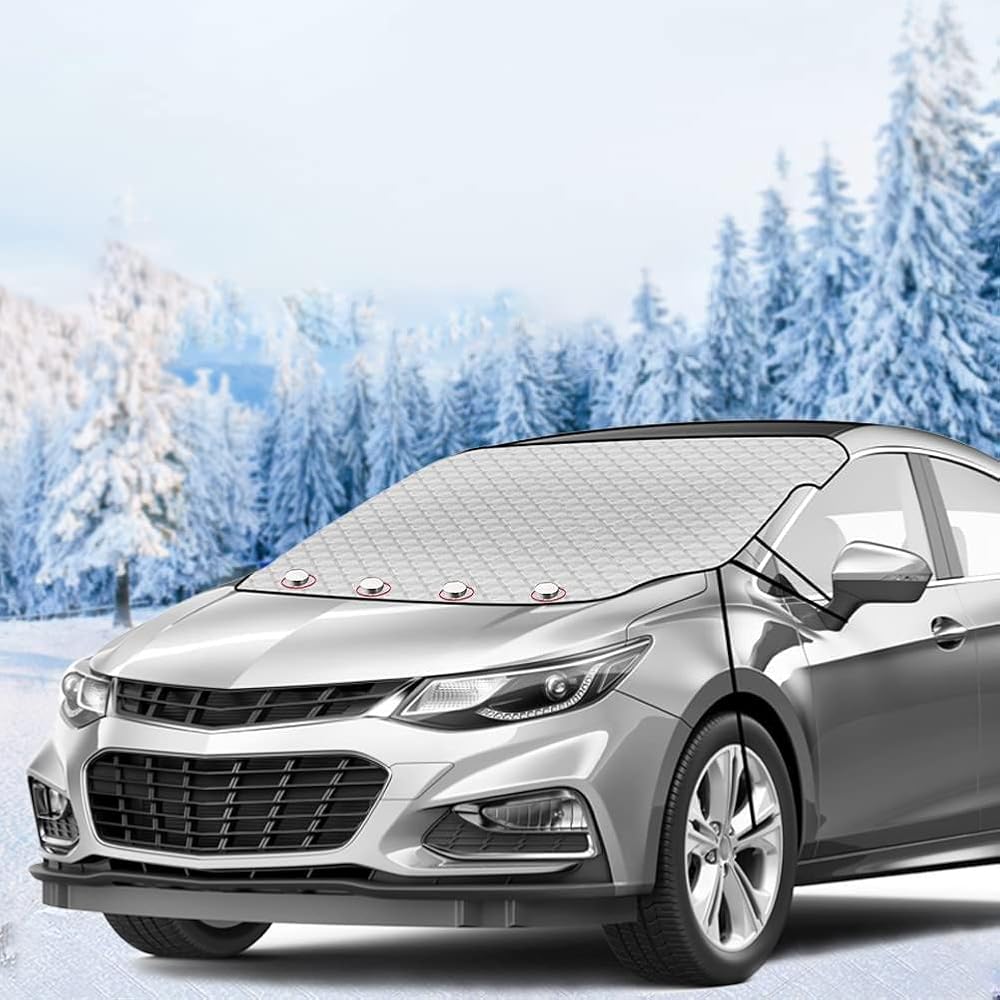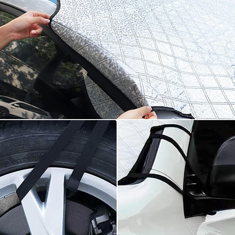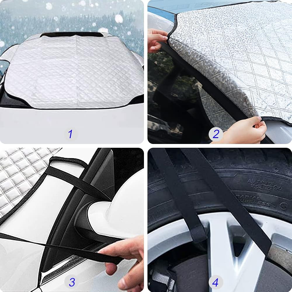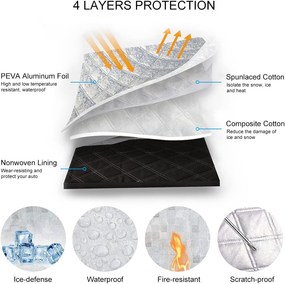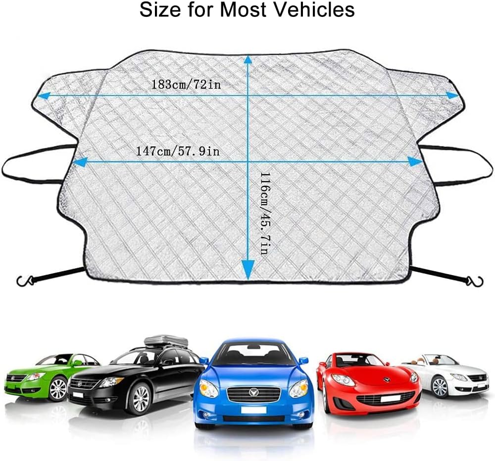 غطاء ثلجي للزجاج الأمامي للسيارة، غطاء نافذة السيارة للحماية من الصقيع والثلج والشمس مع 4 طبقات حماية، يناسب معظم السيارات وسيارات الدفع الرباعي والشاحنات والشاحنات