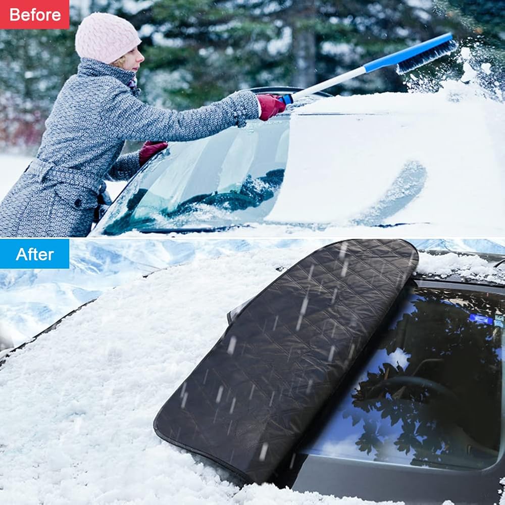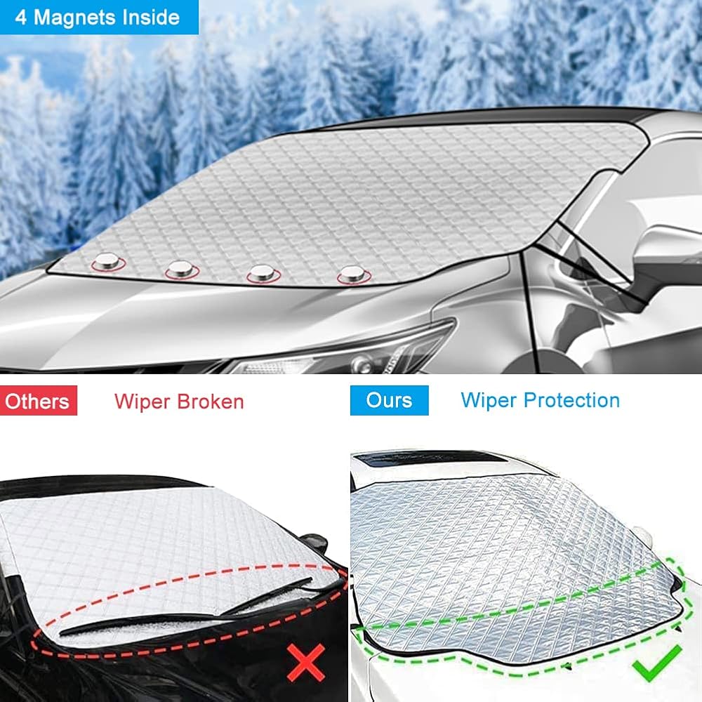 • ❄【حماية إضافية للممسحة】يمتد الغطاء الثلجي للزجاج الأمامي لفترة أطول لحماية ممسحة الزجاج الأمامي. يمكن أن يمنع الممسحة من التلف عن طريق سحقها وتجميدها في الشتاء أو الشيخوخة في الصيف.