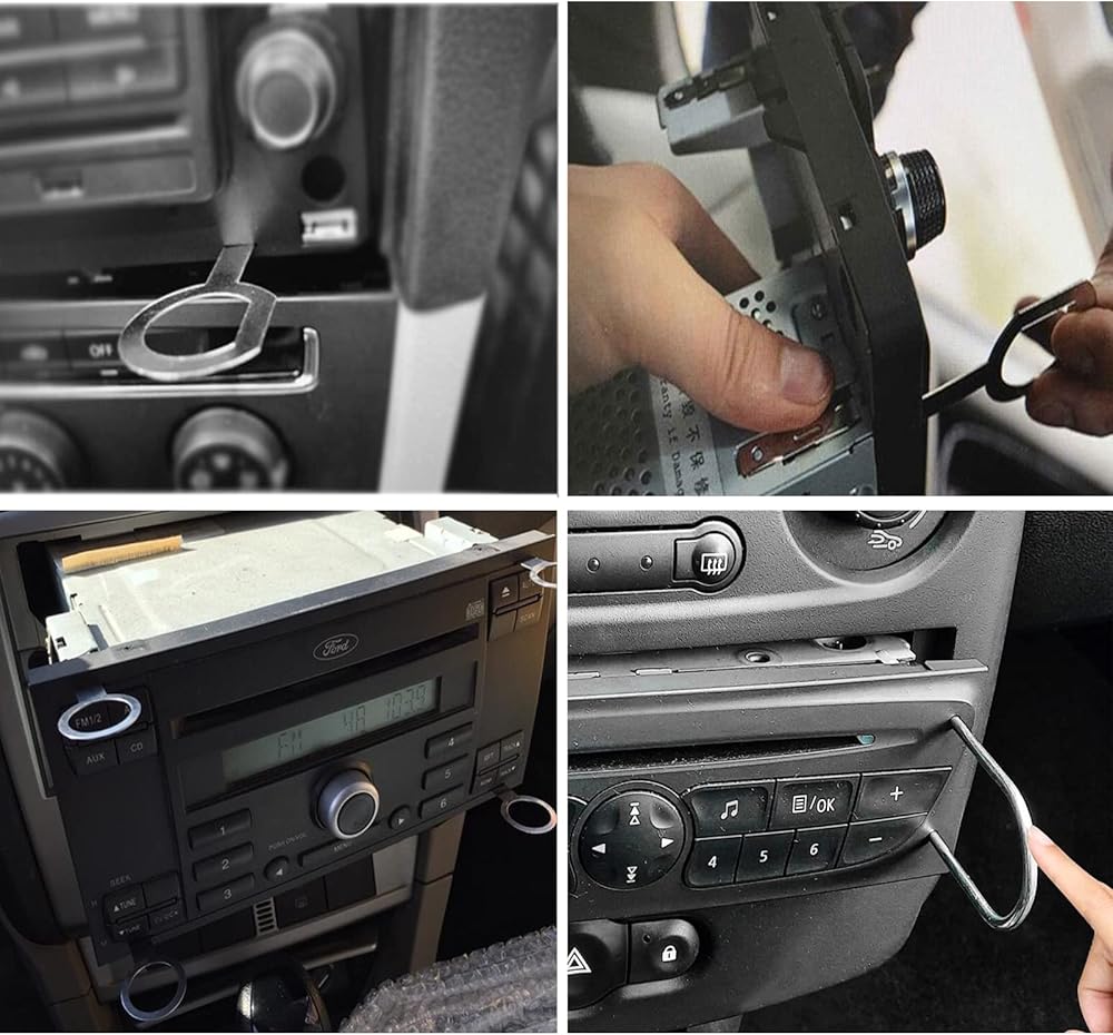 تشمل العبوة - 4 قطع من أداة إزالة الحواف البلاستيكية، قطعة واحدة من مزيلات التثبيت، 4 قطع من أدوات إزالة الراديو. إذا كانت لديك أي أسئلة، فلا تتردد في الاتصال بنا، وسنبذل قصارى جهدنا من أجلك. طقم تثبيت السيارة الخاص بنا مناسب لجميع السيارات.