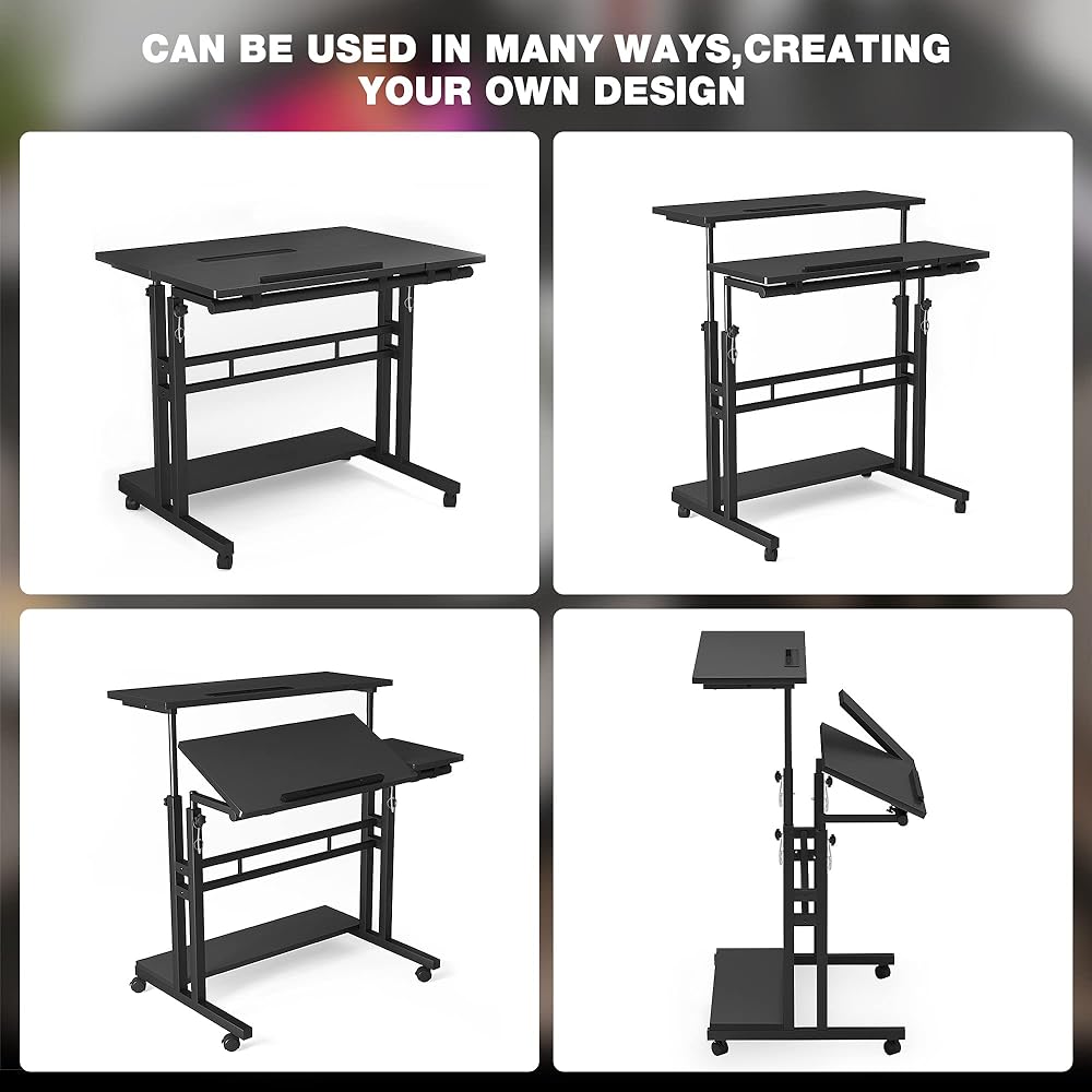 𝗠𝘂𝗹𝘁𝗶𝗽𝘂𝗿𝗽𝗼𝘀𝗲 𝗮𝗻𝗱 𝗘𝗿𝗴𝗼𝗻𝗼𝗺𝗶𝗰: استخدم مكتب الكمبيوتر الدوار هذا كمكتب محمول قائم، أو طاولة ألعاب، أو منصة متدحرجة، أو محطة عمل متنقلة للمكتب، أو الآخرين للحصول على خيارات مرنة. قم بتغيير وضعيتك من الجلوس إلى الوقوف لتخفيف آلام الظهر وتحسين كفاءة العمل بسهولة.