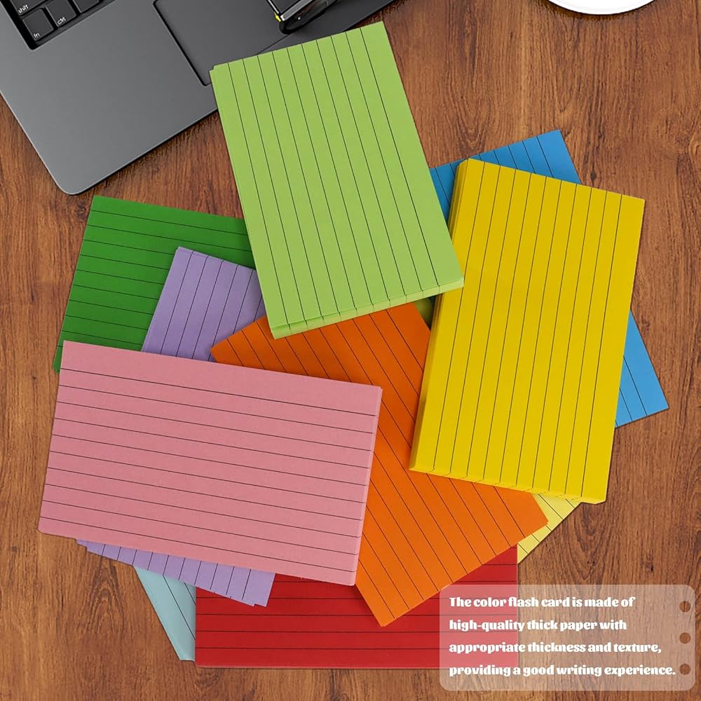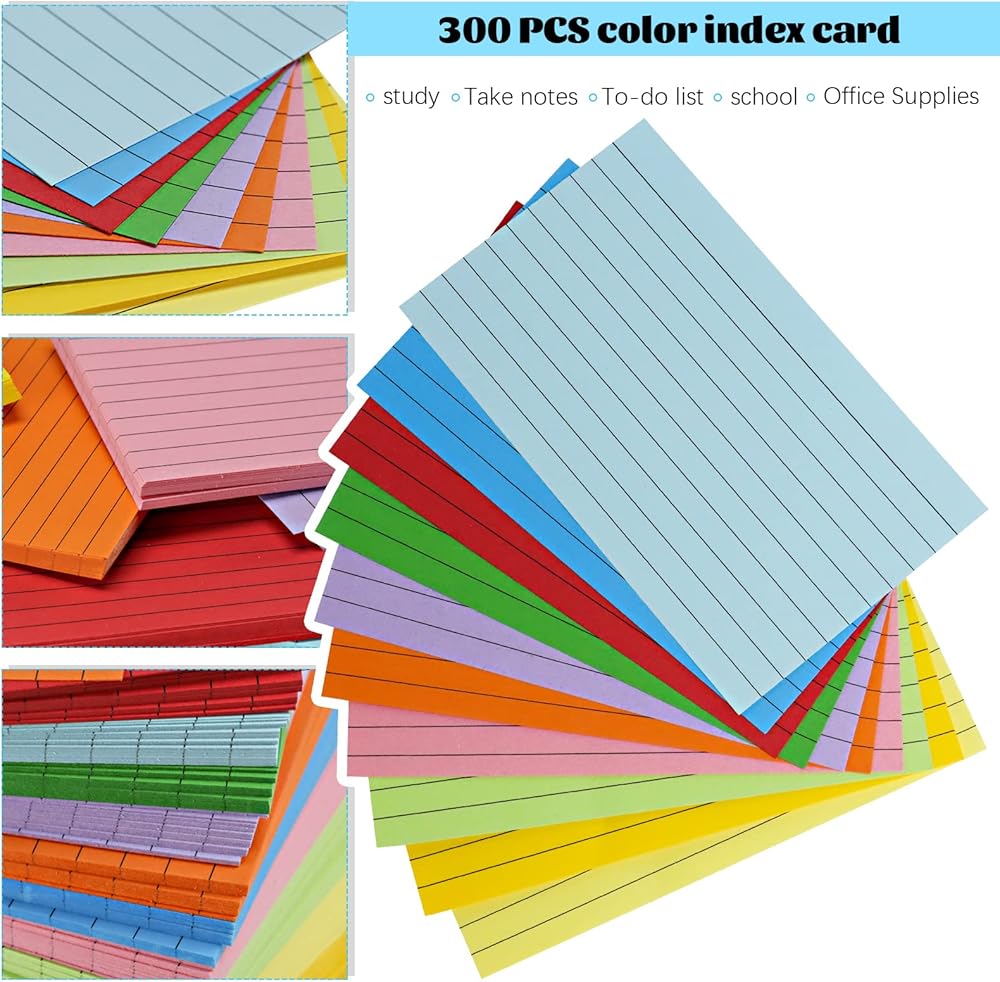 بطاقات فلاش متعددة الألوان: تتضمن العبوة 300 قطعة من بطاقات الفهرس المسطرة مع 10 ألوان نيون، 30 ورقة من كل لون. يمكن استخدامه لفترة طويلة.