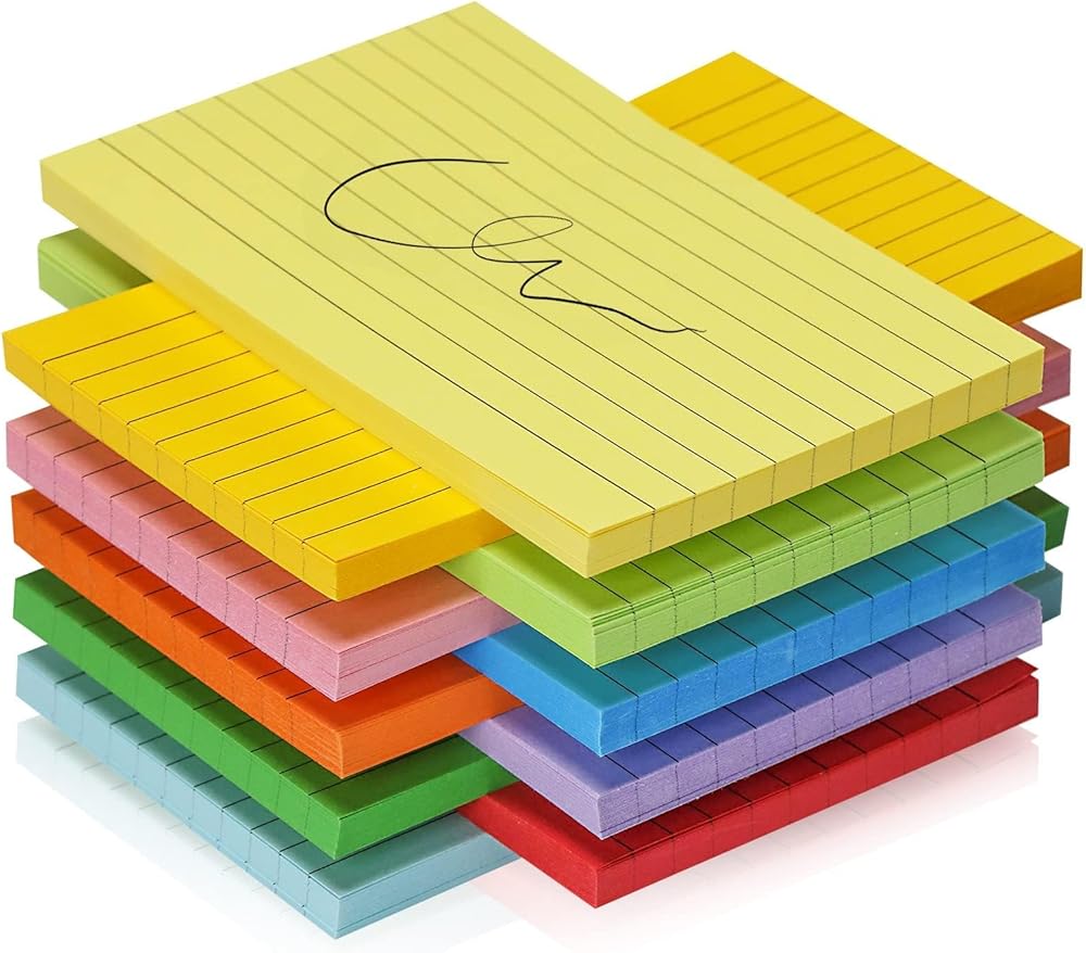 ألوان متنوعة: تتوفر بطاقات الملاحظات الملونة هذه في 10 ألوان مختلفة، مثل الأزرق والأصفر والوردي والأرجواني والأحمر... يرجى الرجوع إلى الصورة لمزيد من التفاصيل.