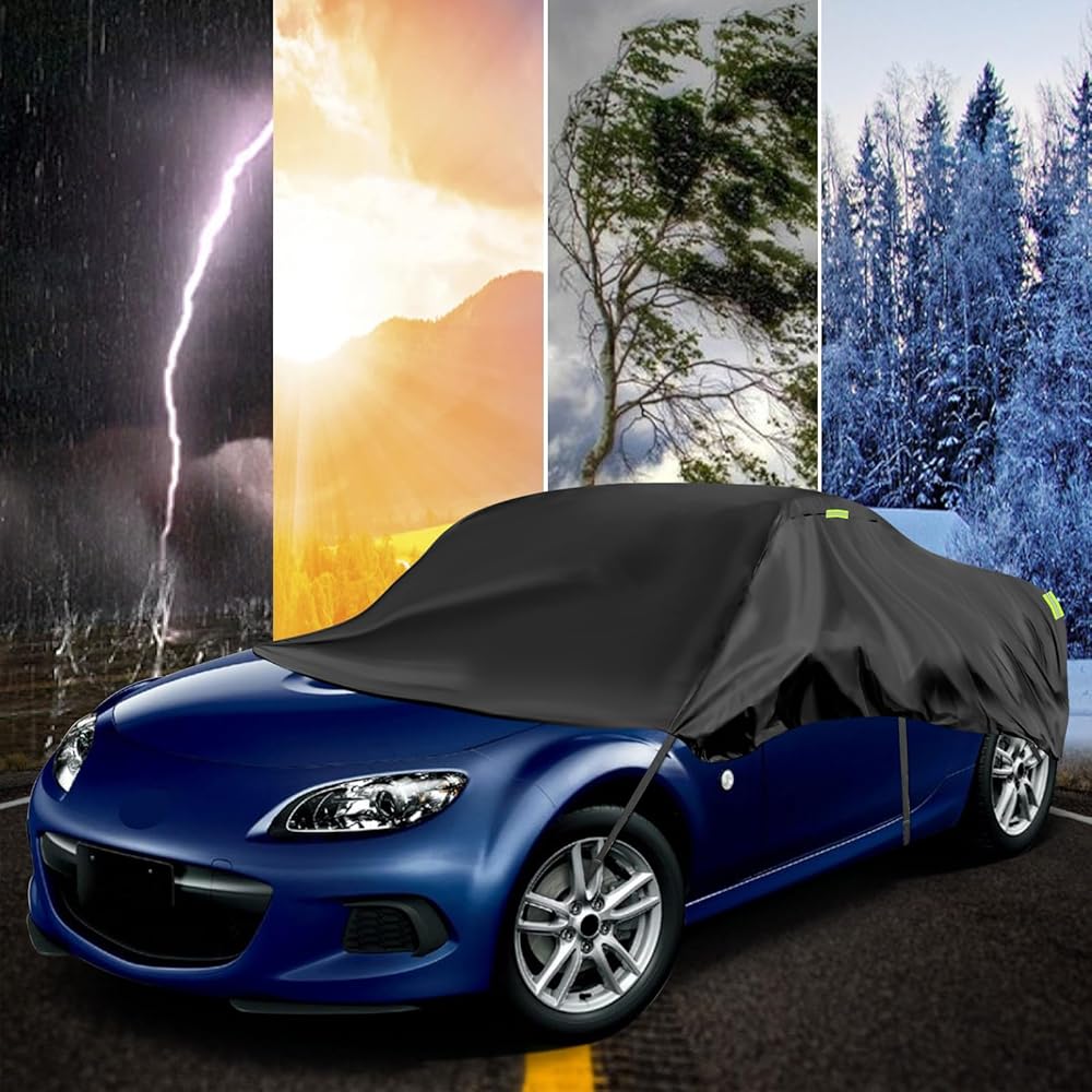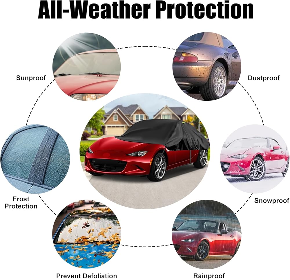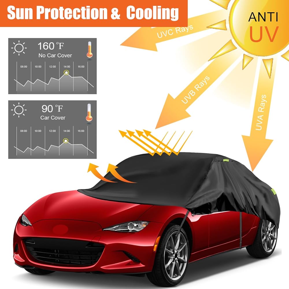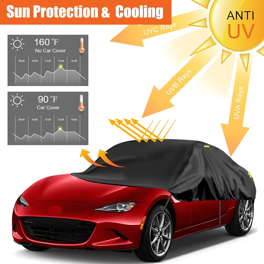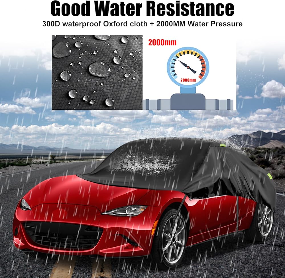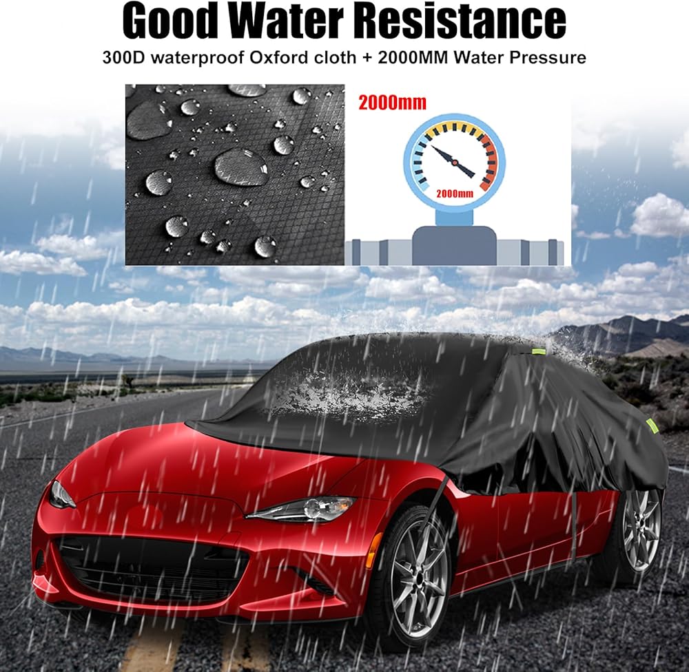[مادة مقاومة للماء عالية الجودة]: غطاء نصف غطاء Toyota Highlander مصنوع من مادة قماش أكسفورد 300D، وهي أكثر سمكًا وأكثر متانة من نسيج PE&PEVA، ولن يتشوه أو يخدش بسهولة، هذا النسيج المطور يمنع اختراق الماء، مما يوفر أفضل حماية لسيارتك في المطر.