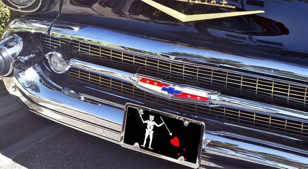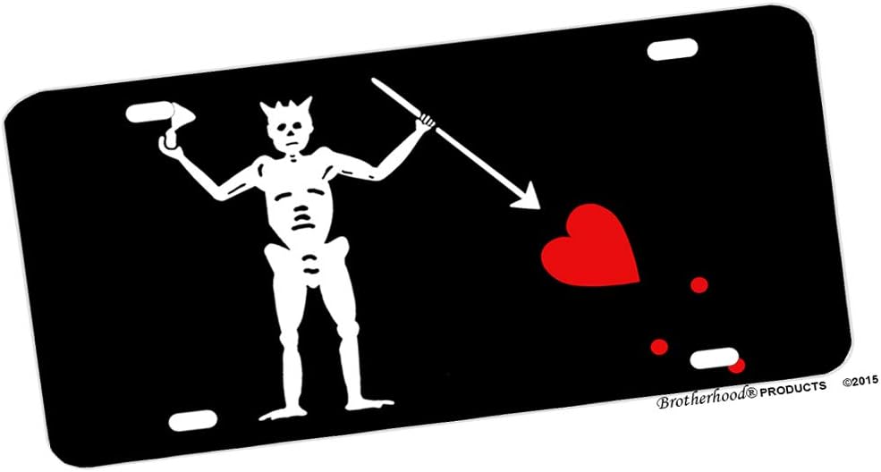لوحة ترخيص من الألومنيوم بعلم القراصنة باللون الأسود