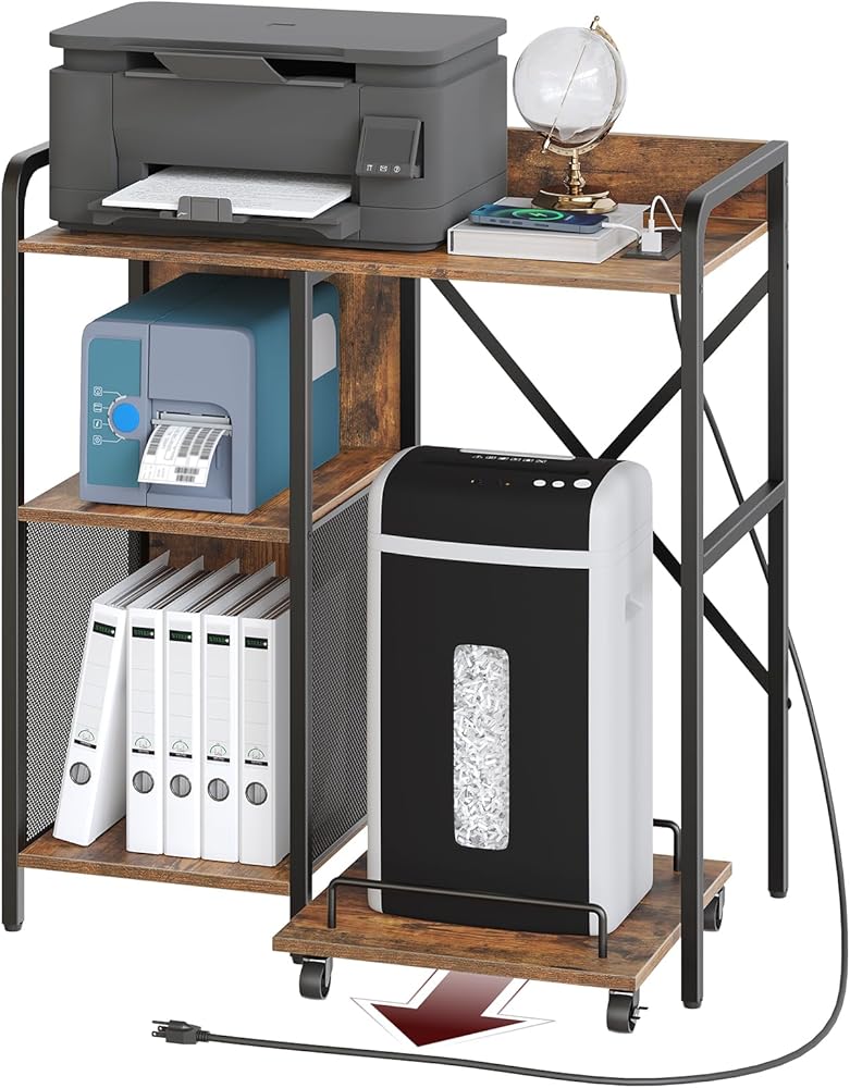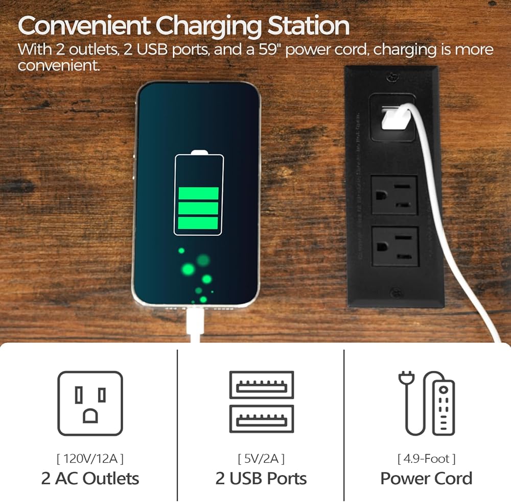 حامل الطابعة مع محطة شحن: يشتمل حامل الطابعة الكبير هذا على محطة شحن بسلك طاقة مقاس 59 بوصة ومنفذين USB ومنفذين، مما يجعل من السهل شحن الطابعات والماسحات الضوئية وأجهزة تمزيق الورق والهواتف والأجهزة الإلكترونية الأخرى