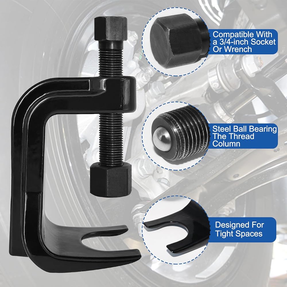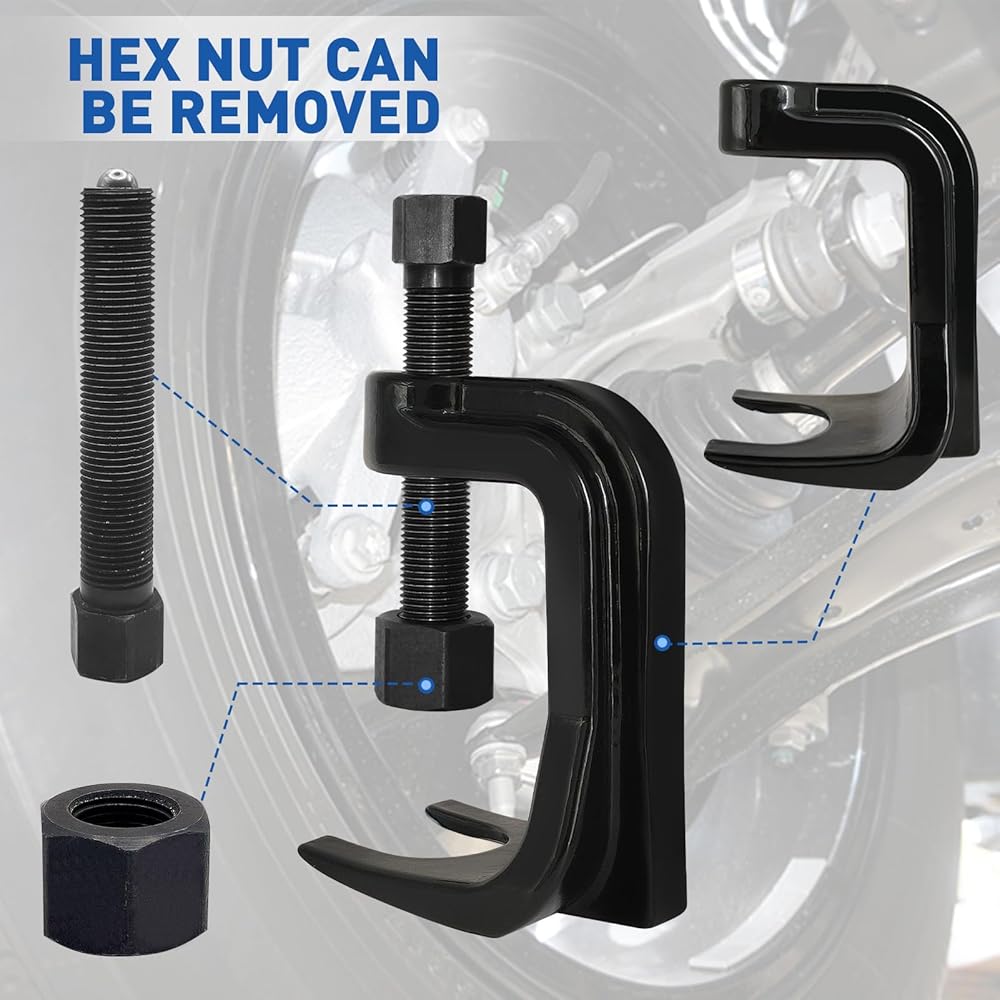 سهل الاستخدام: لا حاجة إلى مطرقة للتغلب عليها. فقط قم بلفها باستخدام مفتاح ربط أو عزم الدوران، فإن صامولة سحب قضيب الربط القابلة للإزالة ستدفع دائمًا مفاصل الكرة العالقة حتى تخرج. استبدل أداة Pickle Fork Tool بمزيل المفاصل الكروي الخاص بنا لإزالتها ببساطة والحفاظ على مفاصلك من التحول إلى اللون الأسود والأزرق.