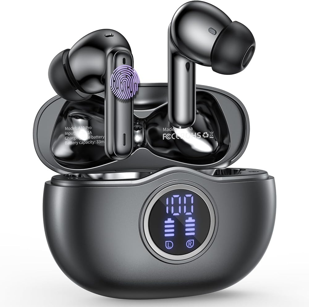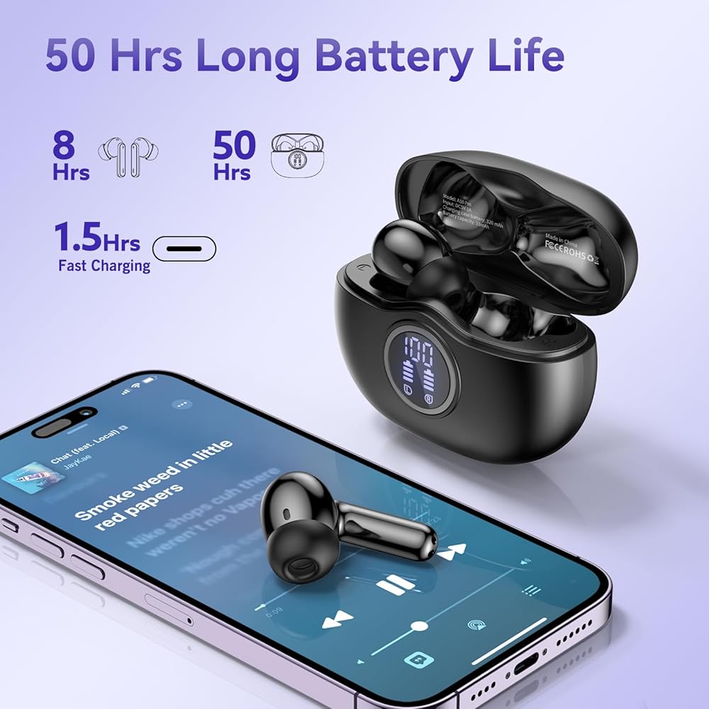 سماعات أذن لاسلكية تعمل لمدة 50 ساعة، سماعات أذن بلوتوث مدمجة بميكروفون لإلغاء الضوضاء مع علبة شحن، سماعات رأس بلوتوث مع صوت ستيريو، سماعات أذن مقاومة للماء IPX7 لهواتف iPhone وAndroid