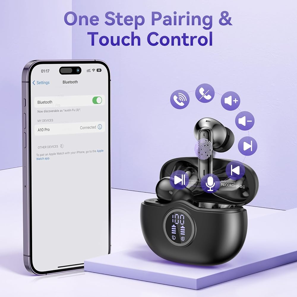 الاقتران بخطوة واحدة: تحتوي سماعات الرأس اللاسلكية على مفتاح تردد مدمج. عند فتح علبة الشحن بعد الاتصال الأول، تعمل سماعة البلوتوث اللاسلكية تلقائيًا وتتصل بأحدث جهاز، بشكل أسرع وأكثر ملاءمة.