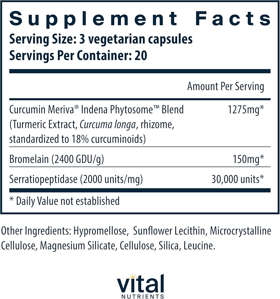 - مكملات الكركمين: تحتوي على مستخلص الكركمين النباتي والبروميلين والسيراتيوببتيداز.