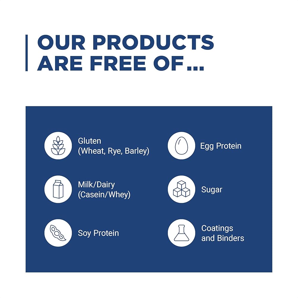 - الجودة والنقاء والفعالية: بدون طلاءات أو مواد رابطة، خالية من الغلوتين، وخالية من الألبان، وخالية من الصويا، وخالية من السكر.