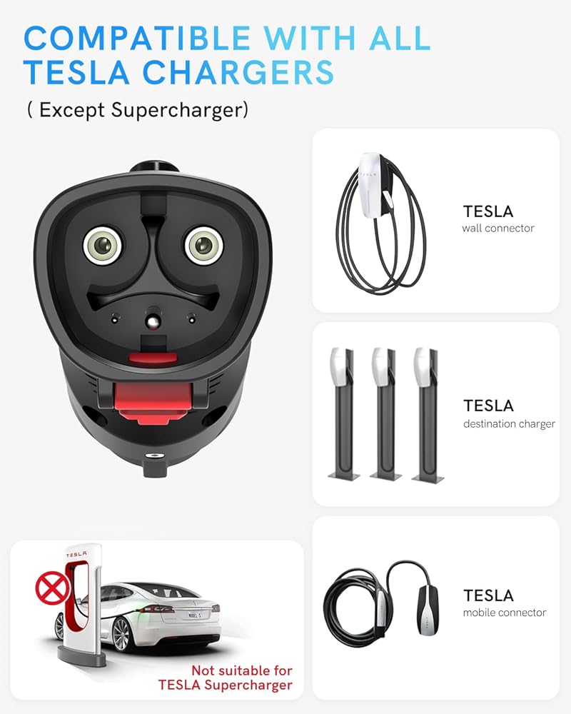 محول شحن تيسلا إلى J1772 - محول شاحن تيسلا يصل إلى 60 أمبير 250 فولت تيار متردد مع قفل أمان متوافق مع شواحن الوجهة الجدارية المنزلية من تيسلا/موصلات الهاتف المحمول، محول J1772 EV لجميع أجهزة J1772 EVs