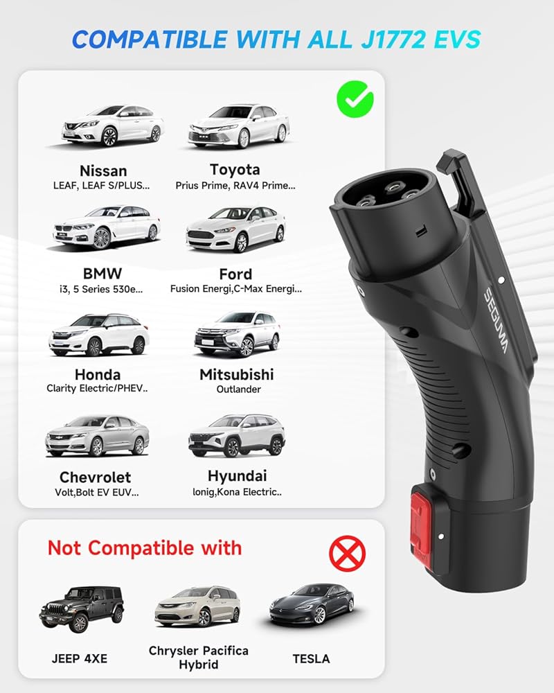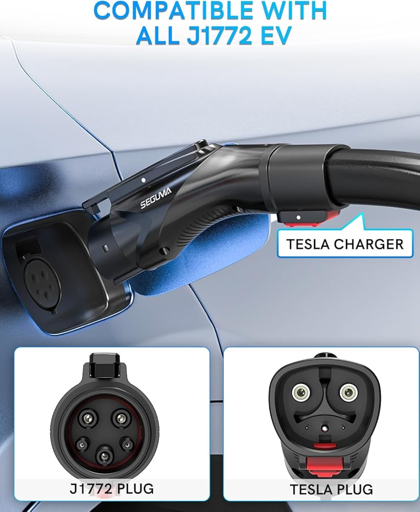 【لجميع J1772 Inlet BEV/PHEVs】يتوافق محول المستوى 2 J1772 الخاص بنا بشكل مثالي مع جميع EVs الرياضية بمنفذ شحن J1772. وهذا يشمل سيارات Ford Mach-E العصرية، وFord Lightning، وHyundai، وKIA، وVolkswagen، وNissan، وPolestar، وToyota، وLucid وغيرها من المركبات الانتقائية. فهو يضمن التوافق السلس، مما يتيح لأصحاب السيارات J1772 الوصول إلى البنية التحتية لشحن Tesla دون أي مشاكل في التوافق.