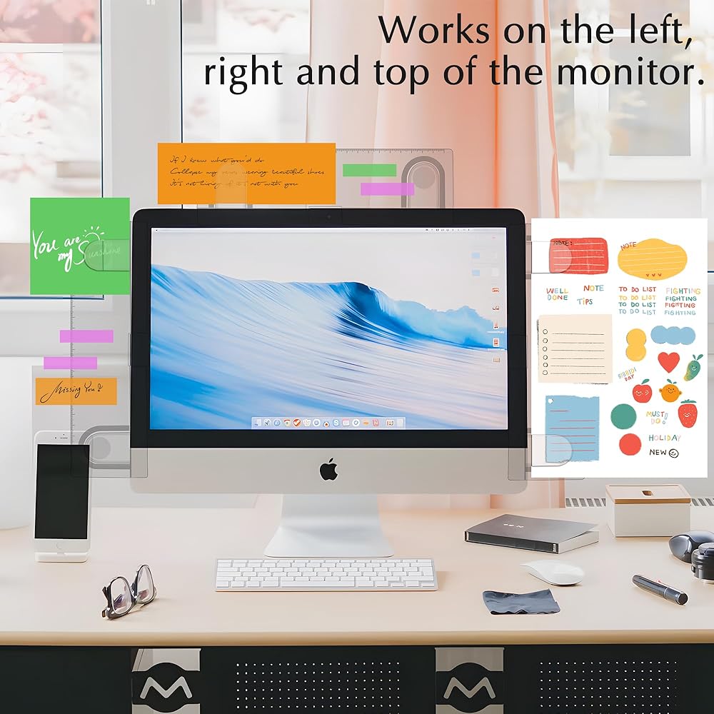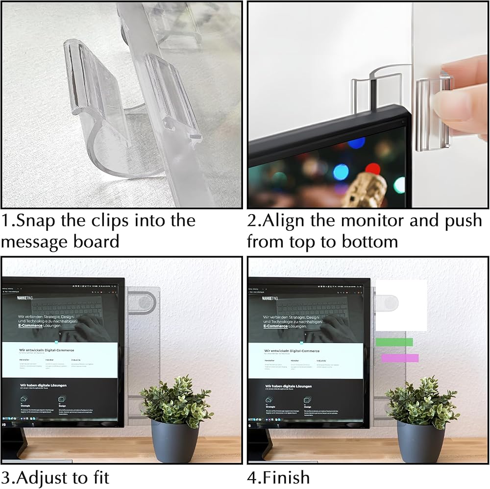 【تركيب سريع】لوحة الرسائل سهلة التجميع. التقط المقطع في لوحة الرسائل. قم بمحاذاة الشاشة وادفع اللوحة من أعلى إلى أسفل. يمكن ضبطه على الجزء العلوي أو على جانب الشاشة. لا داعي للقلق من ترك أثر على الشاشات.