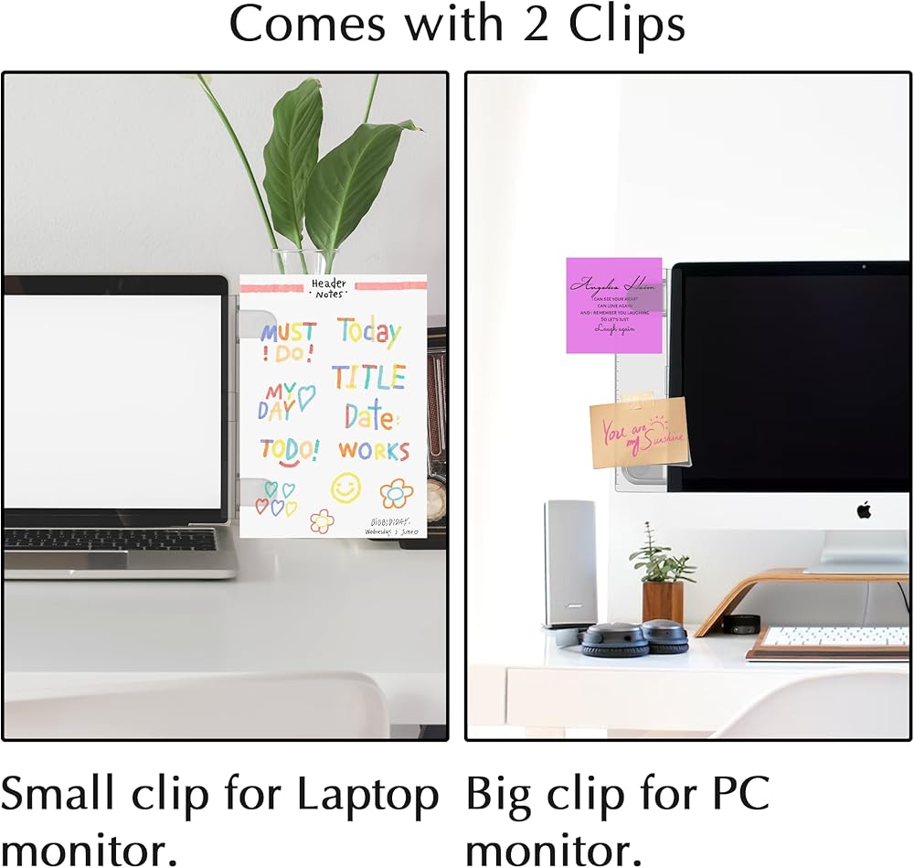 【مناسب لمعظم الشاشات】حامل الورق يناسب معظم شاشات الكمبيوتر/الكمبيوتر المحمول/الكمبيوتر اللوحي. يأتي مع مشبكين لكل حامل. مشبك كبير لشاشات الكمبيوتر، ومشبك صغير لشاشات الكمبيوتر المحمول والأجهزة اللوحية.