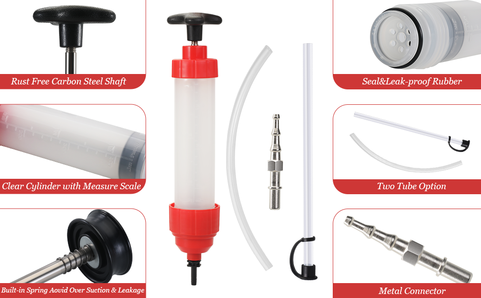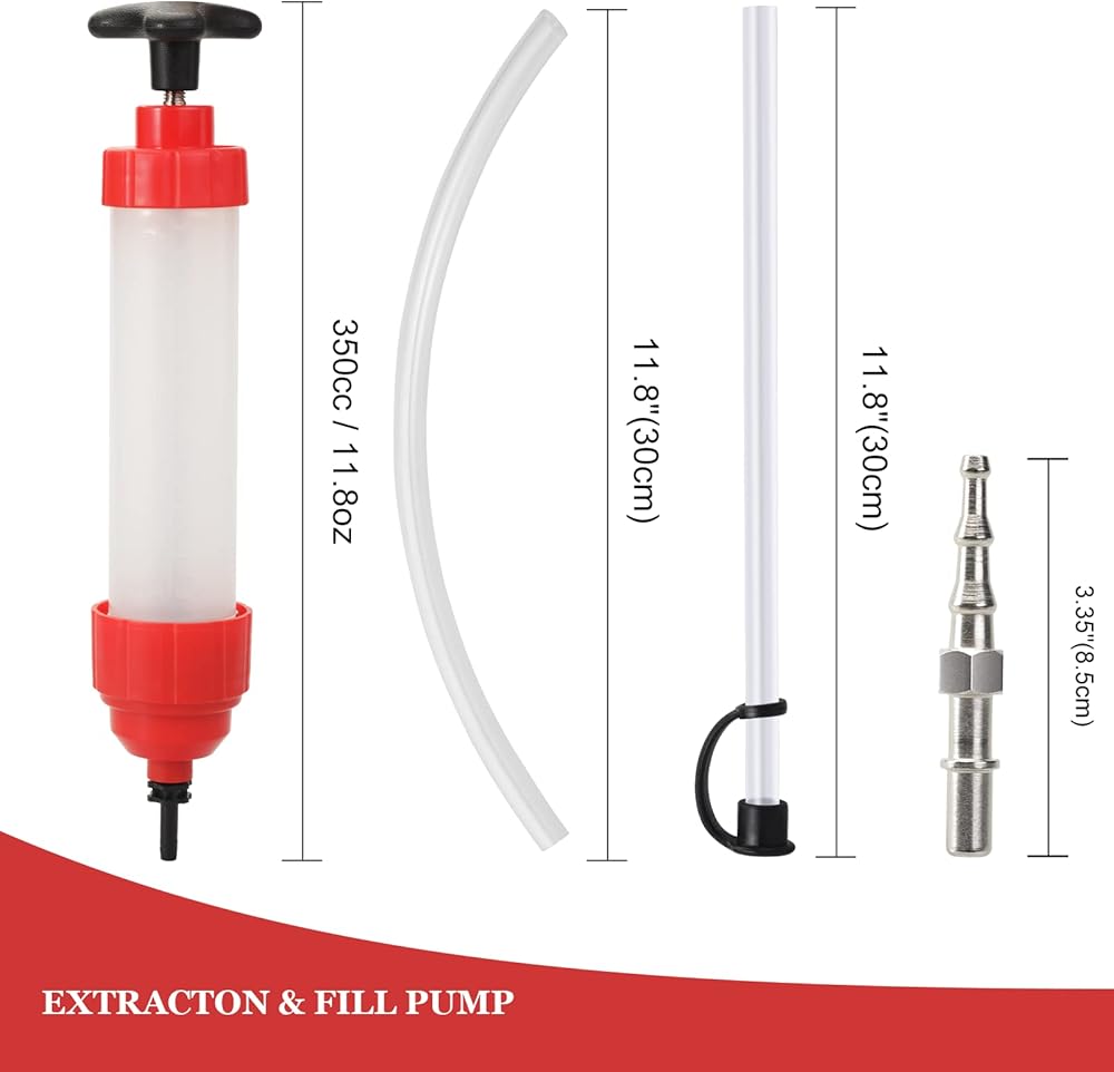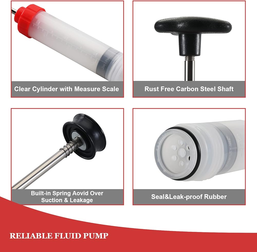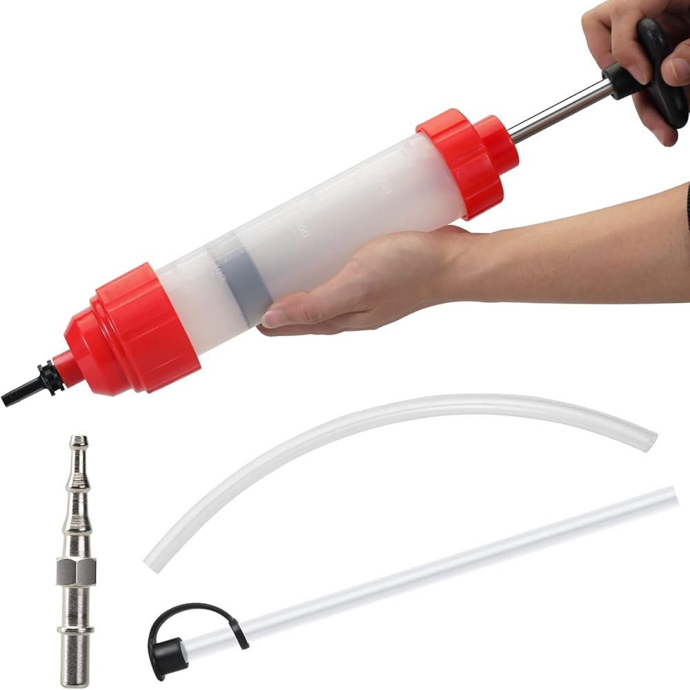 حقنة سائلة أوتوماتيكية متعددة الاستخدام - مستخرج سوائل خفيف الوزن ومانع للتسرب، إضافة جيدة جدًا لصندوق الأدوات الخاص بك. مثالي لاستخراج وتعبئة سائل التوجيه المعزز، وسائل الفرامل، مانع التجمد، زيت التروس، سائل التبريد، زيت ناقل الحركة. مثالية لإزالة أو تغيير الزيوت المختلفة في السيارات والدراجات النارية والقوارب وجزازات العشب والمركبات الترفيهية وما إلى ذلك