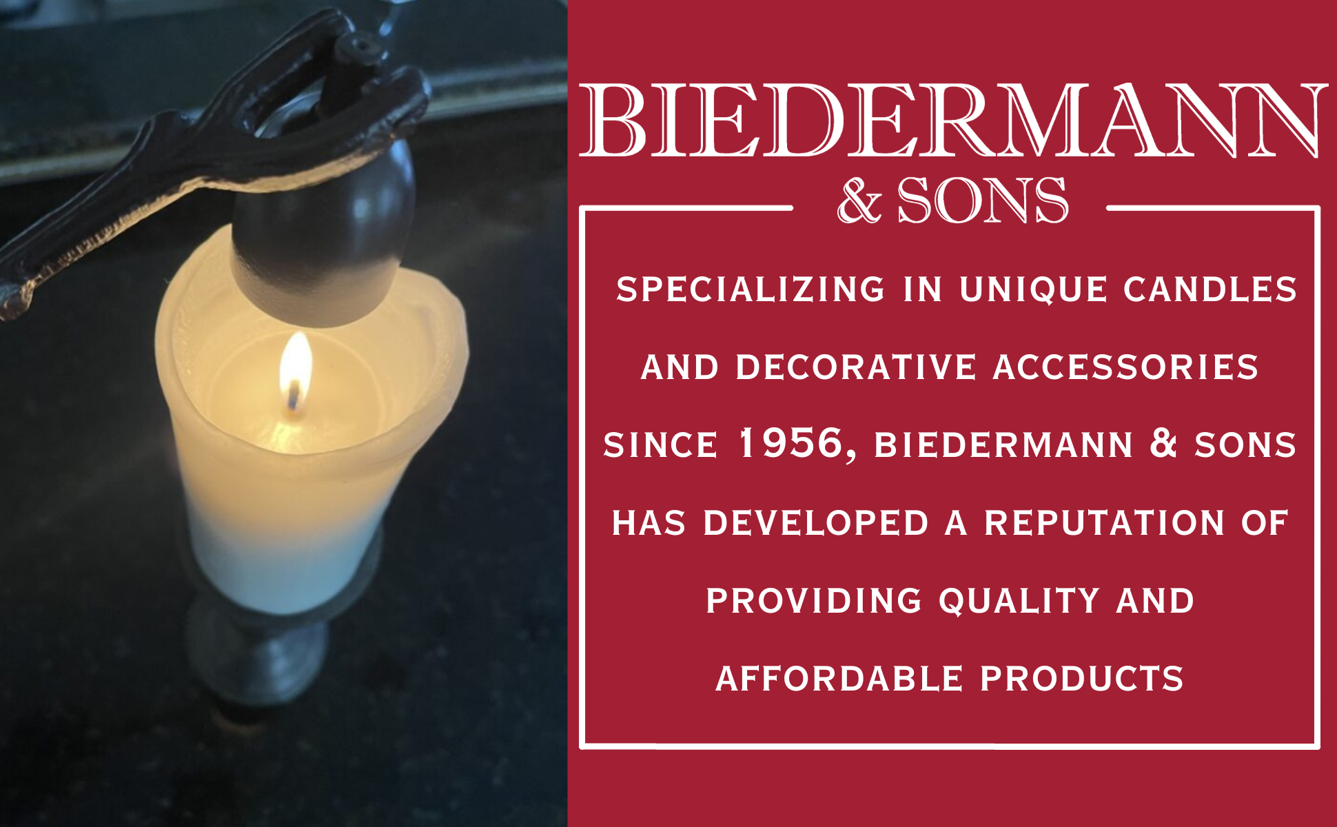 BIEDERMANN & SONS: Crafting brilliance since 1956, Biedermann specializes in traditional and unique candles, holders, snuffers and other items sure to meet all your needs for decorative lighting