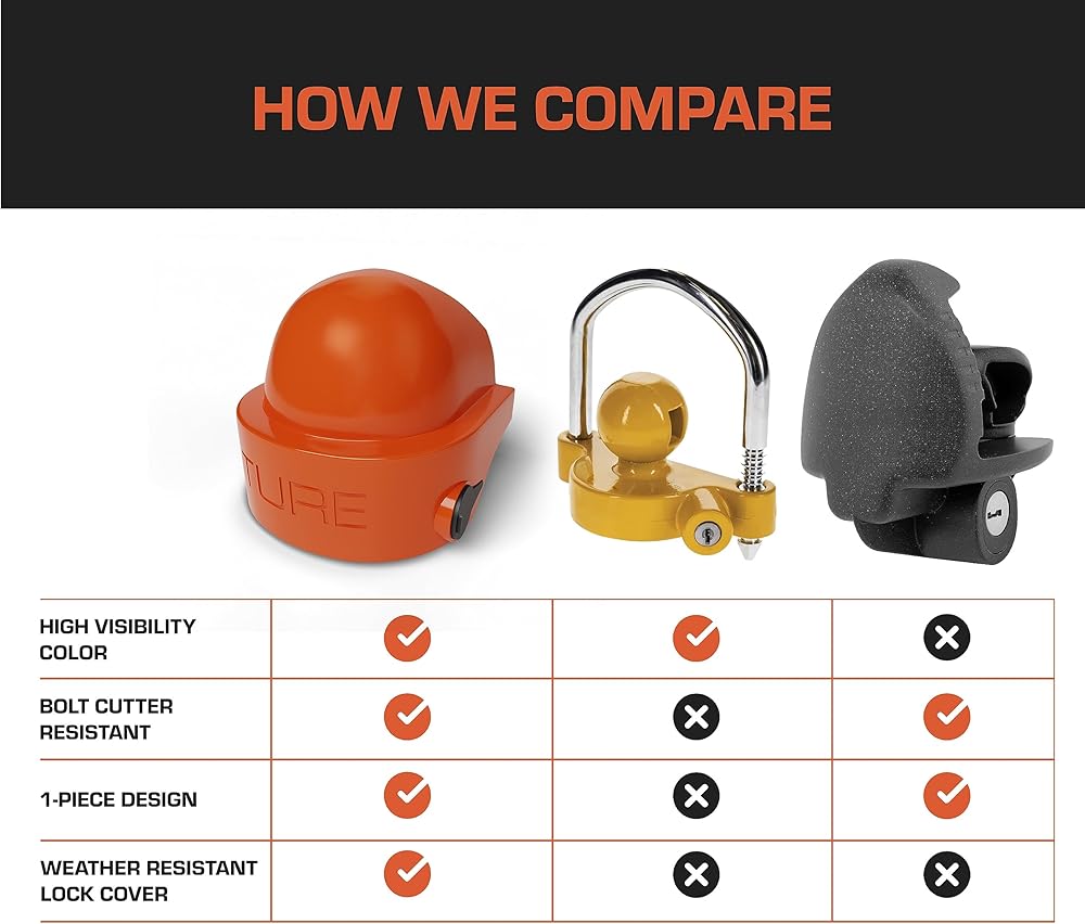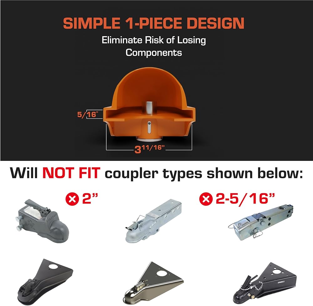 قفل مقرنة مقطورة عالي التحمل مقاس 2 بوصة | مقاوم للعبث | لون برتقالي عالي الوضوح (يناسب وصلات كروية محددة مقاس 1-7/8 بوصة أو 2 بوصة فقط)
